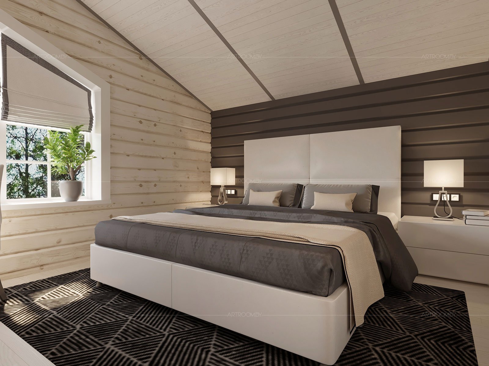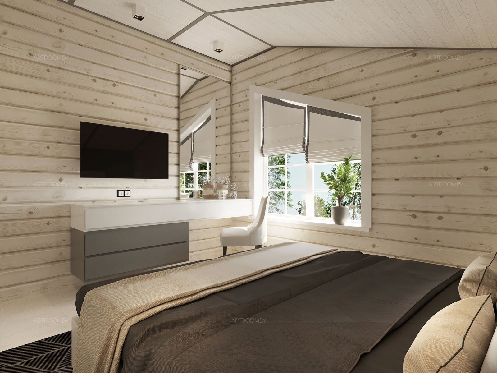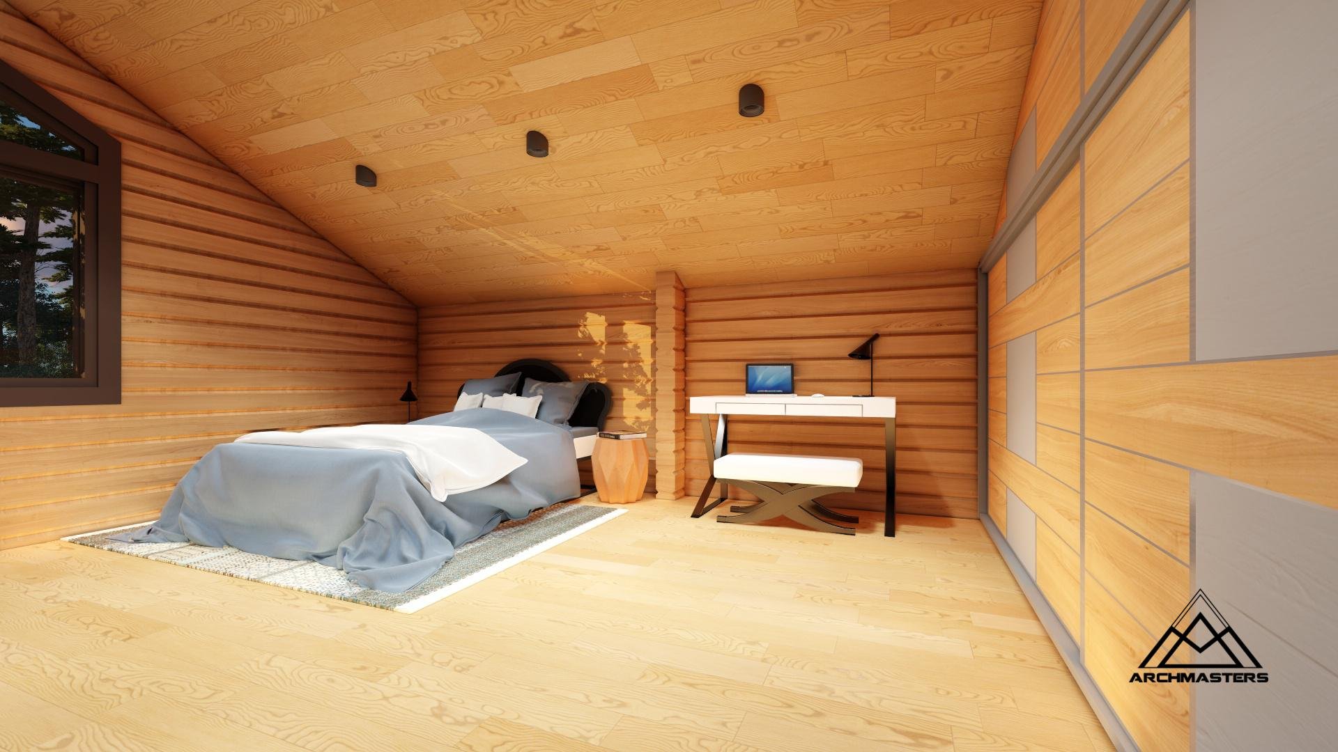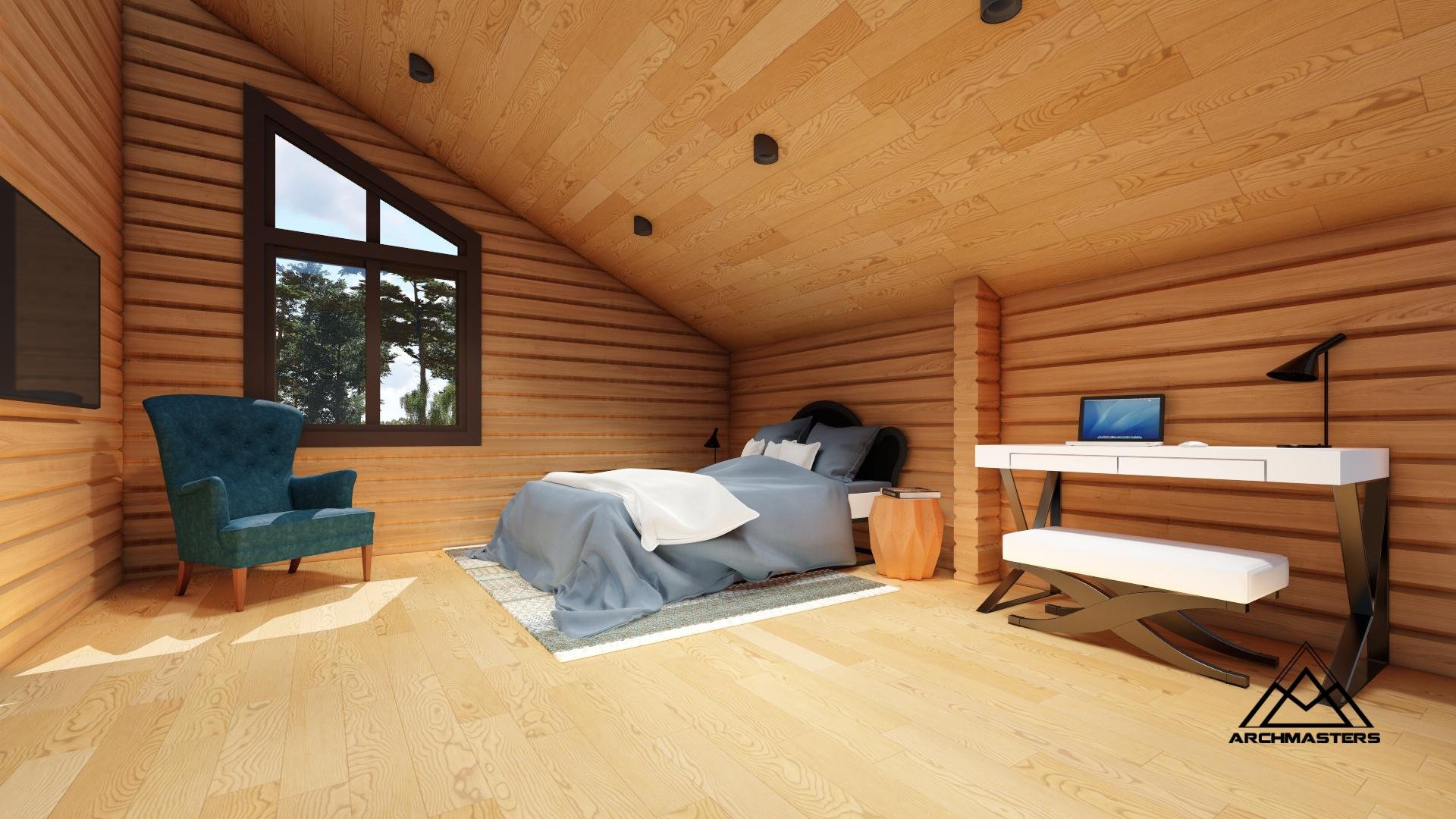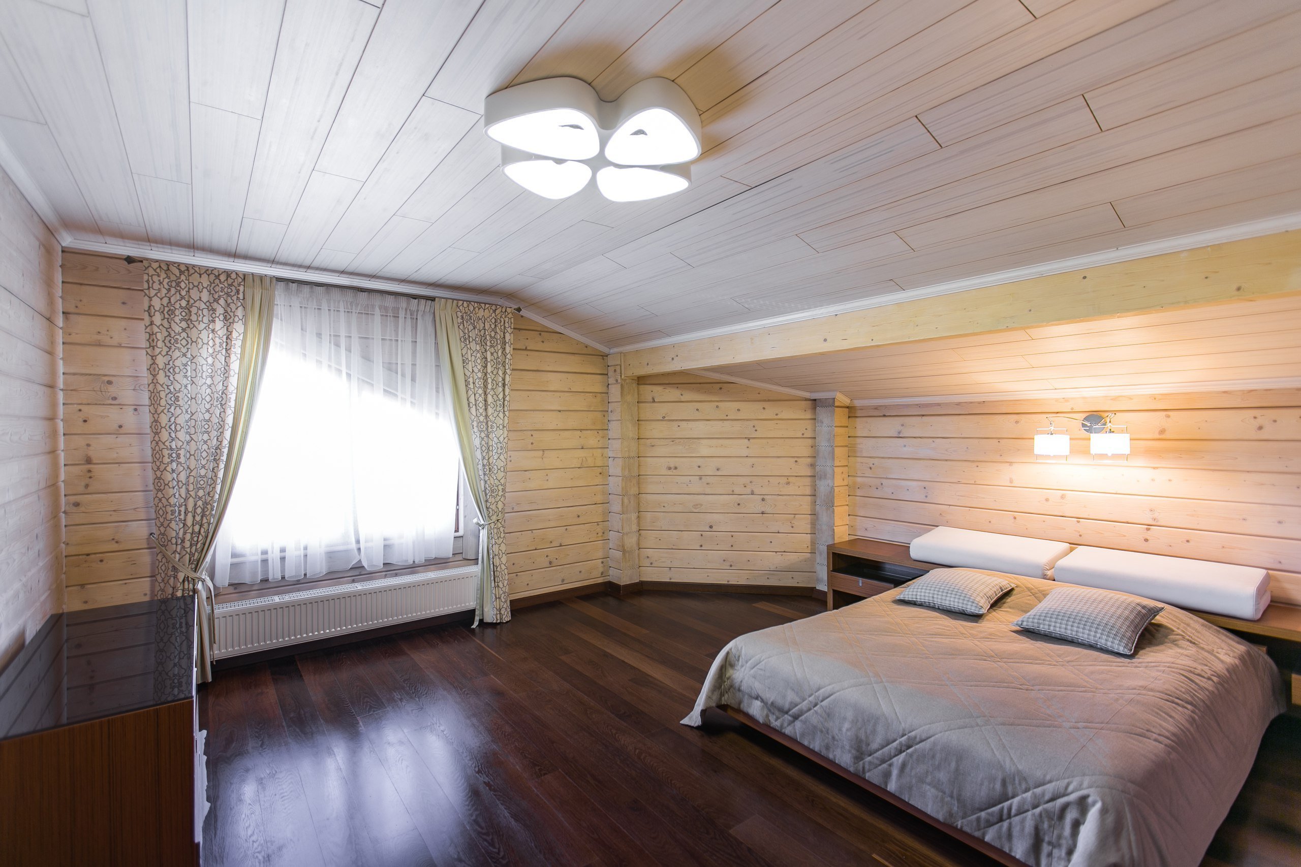Стильная спальня в деревянном доме