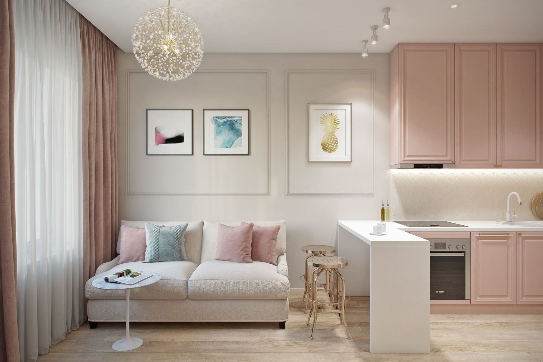 Гостиная в пастельных тонах