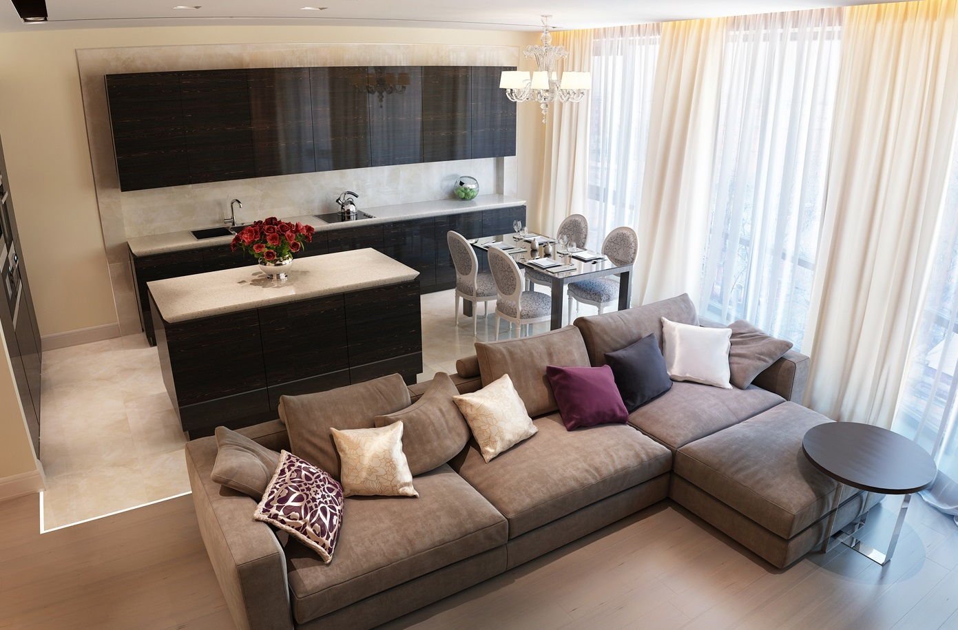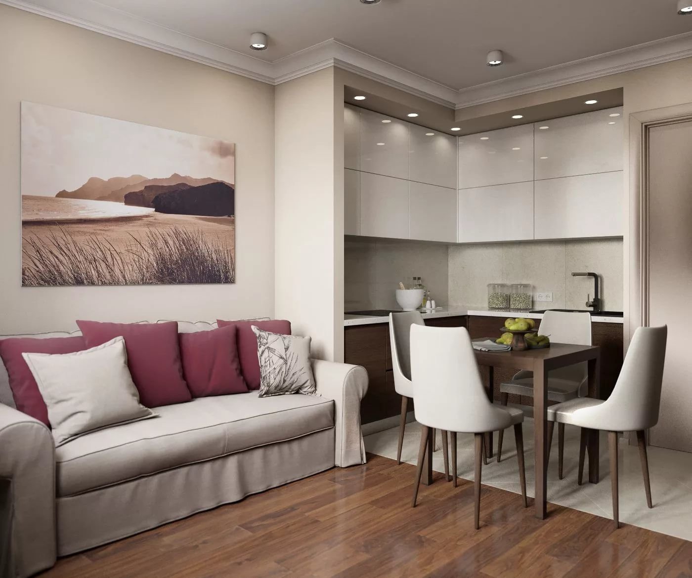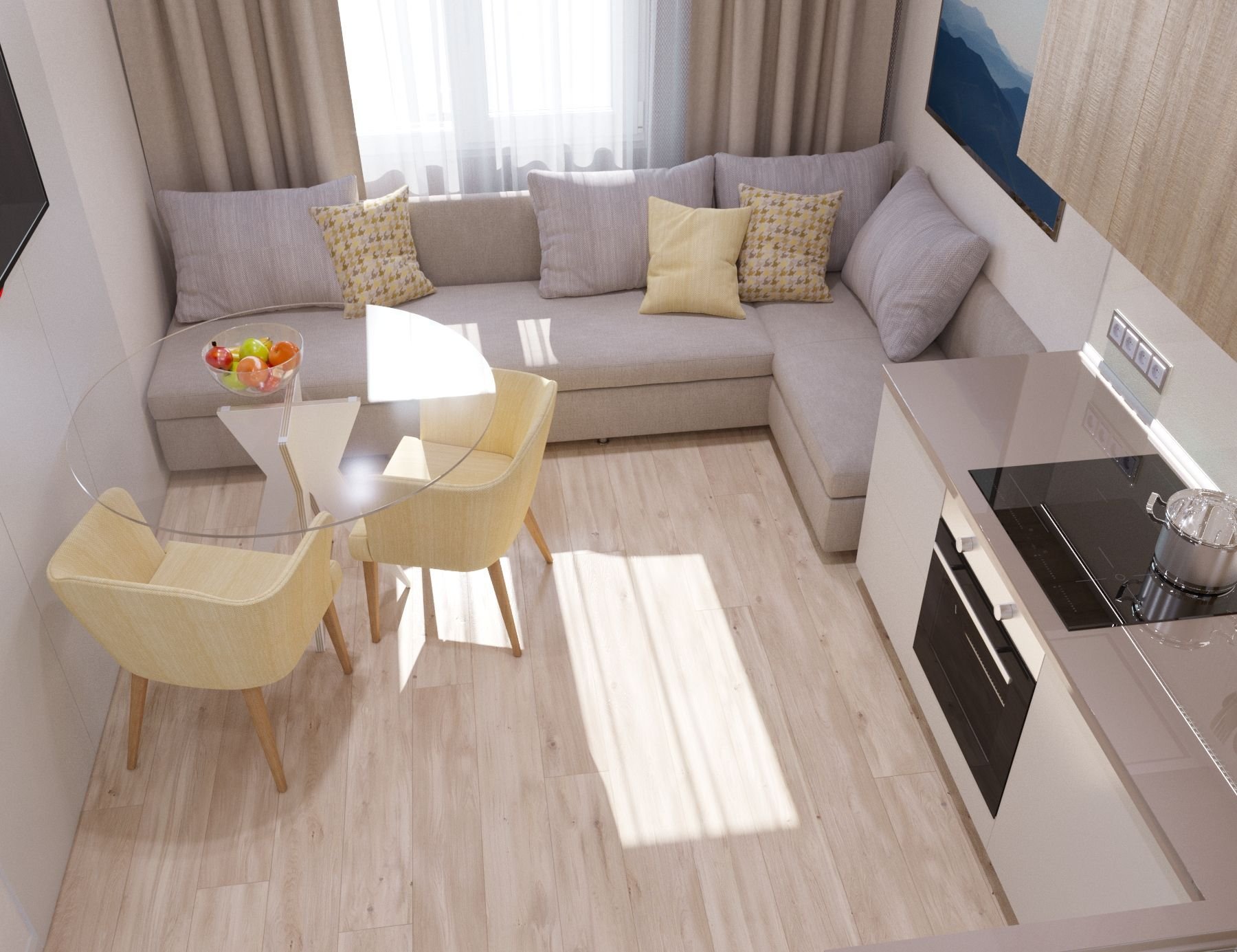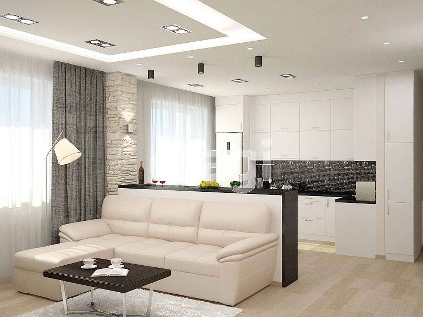 Интерьер гостинной-кухни 12 кв.м.