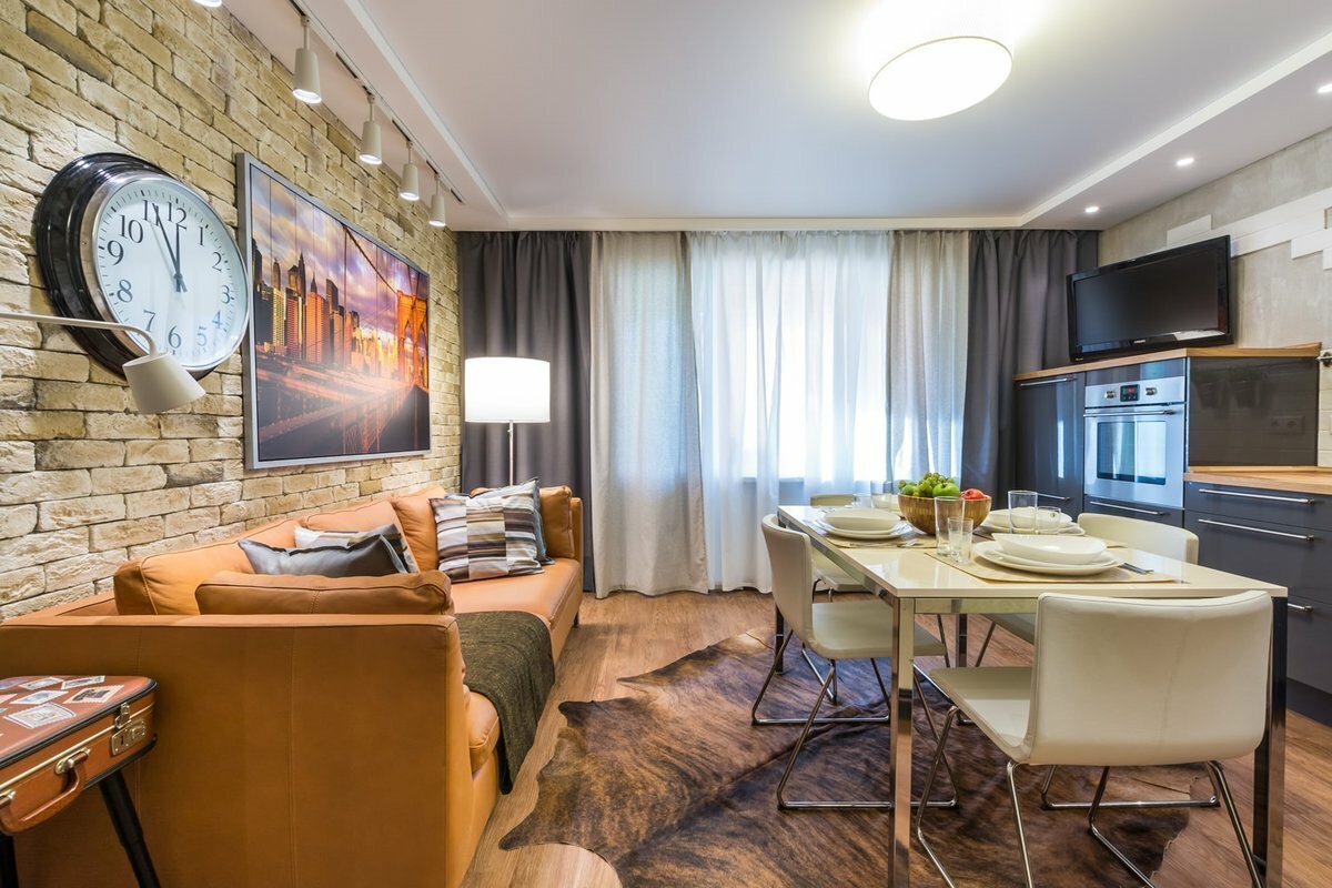 Кухня гостиная 16 кв в стиле лофт