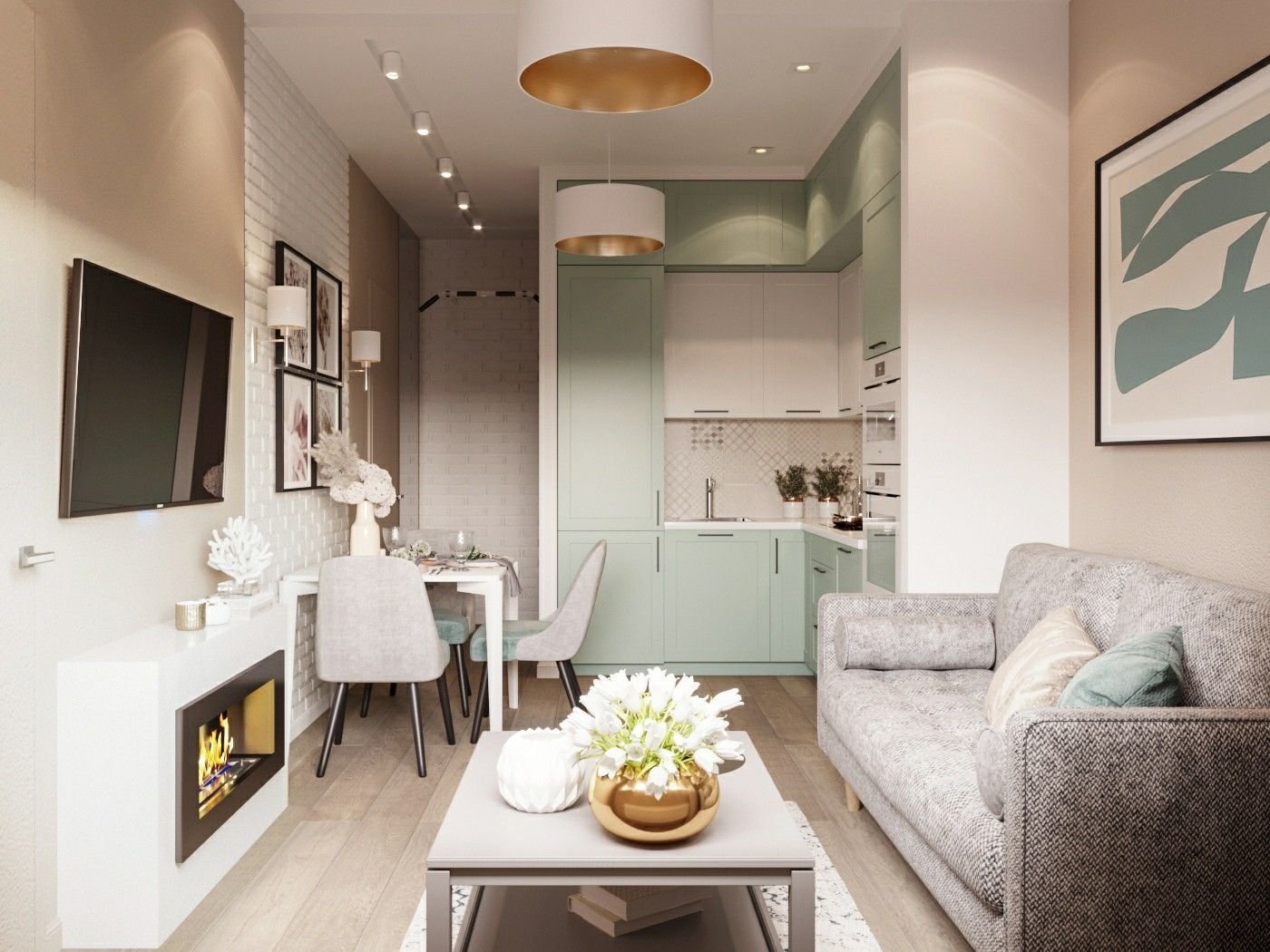 Кухня-гостиная 16 кв.м с диваном