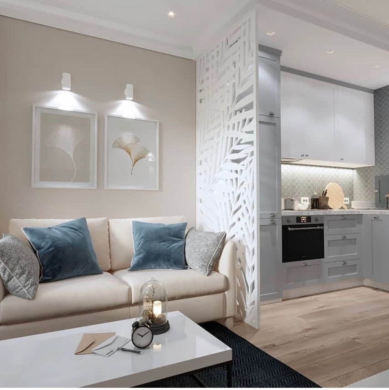 Зонирование кухни с диваном