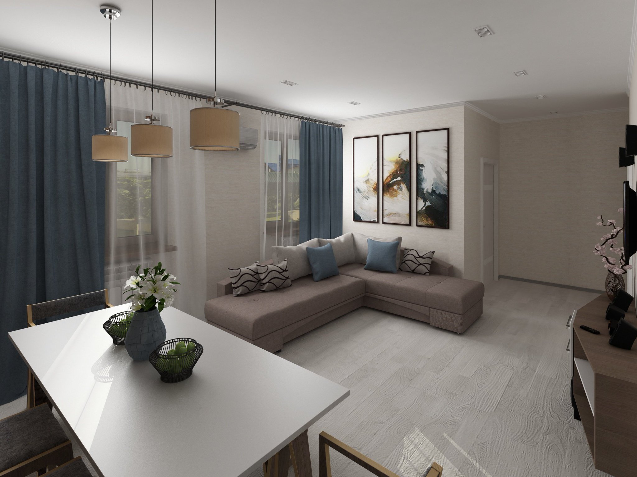 Гостиная столовая с телевизором