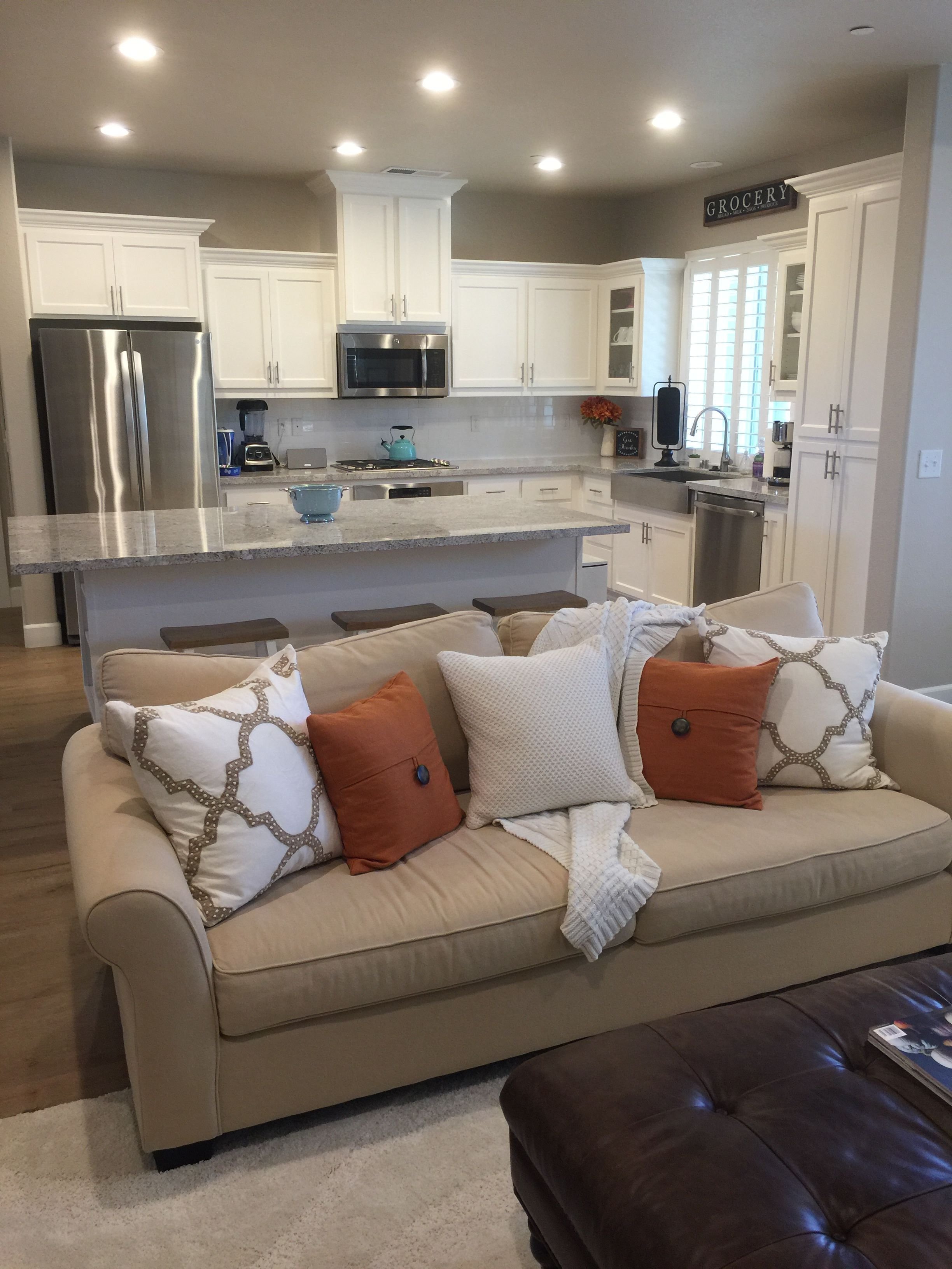 Диван в гостиной совмещенной с кухней