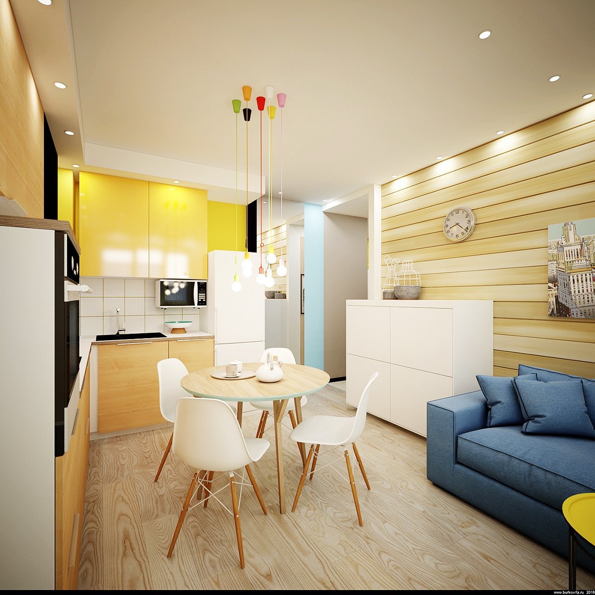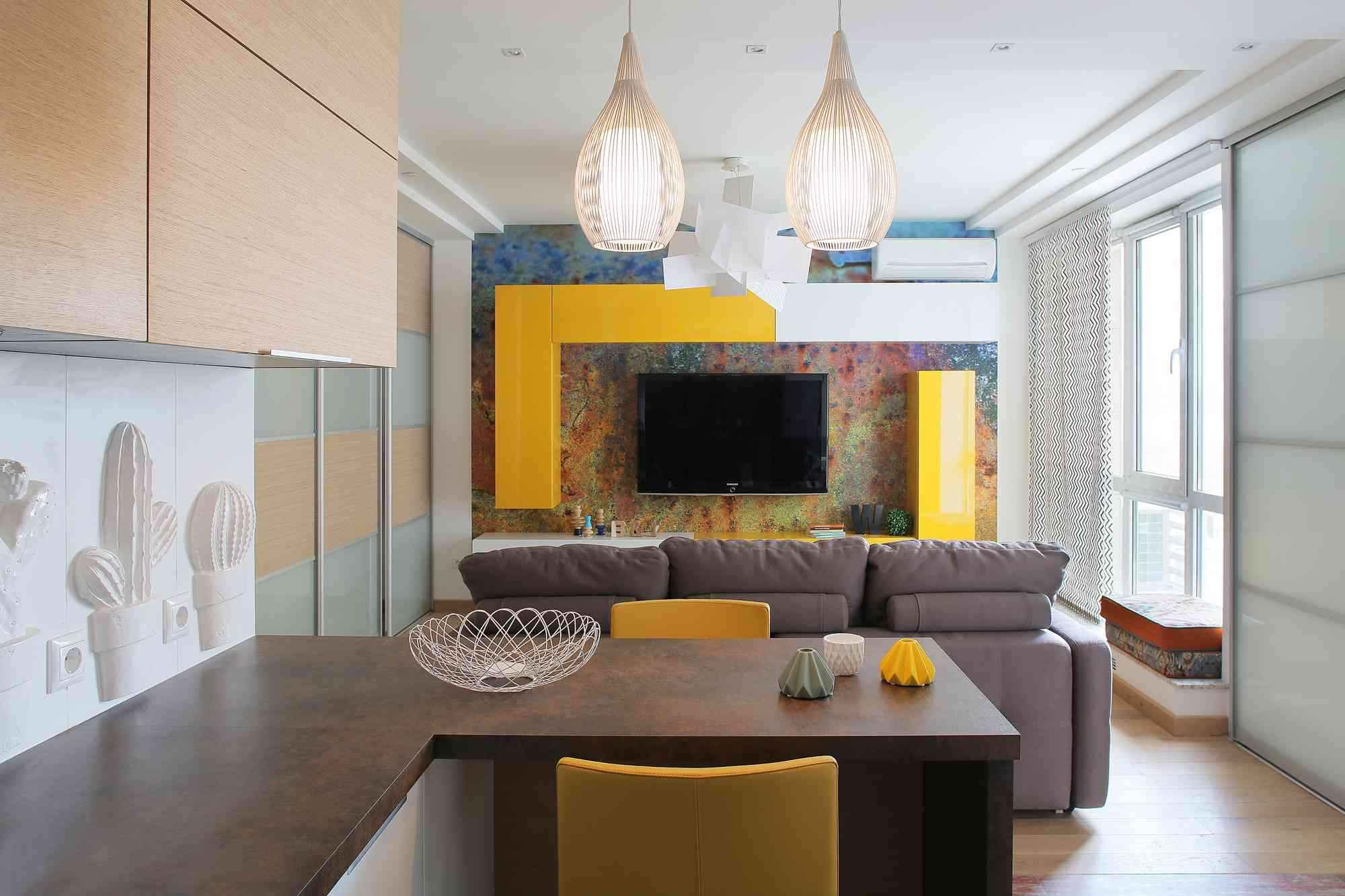 Яркая кухня гостиная