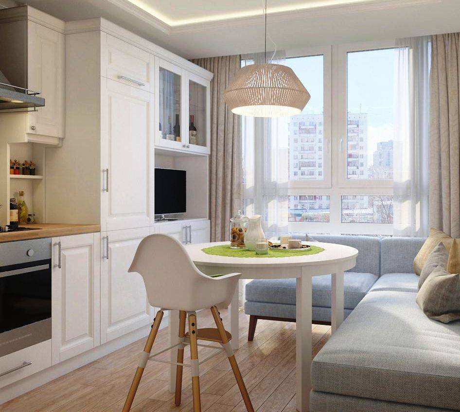 Кухня-гостиная 13.5 кв.м с диваном