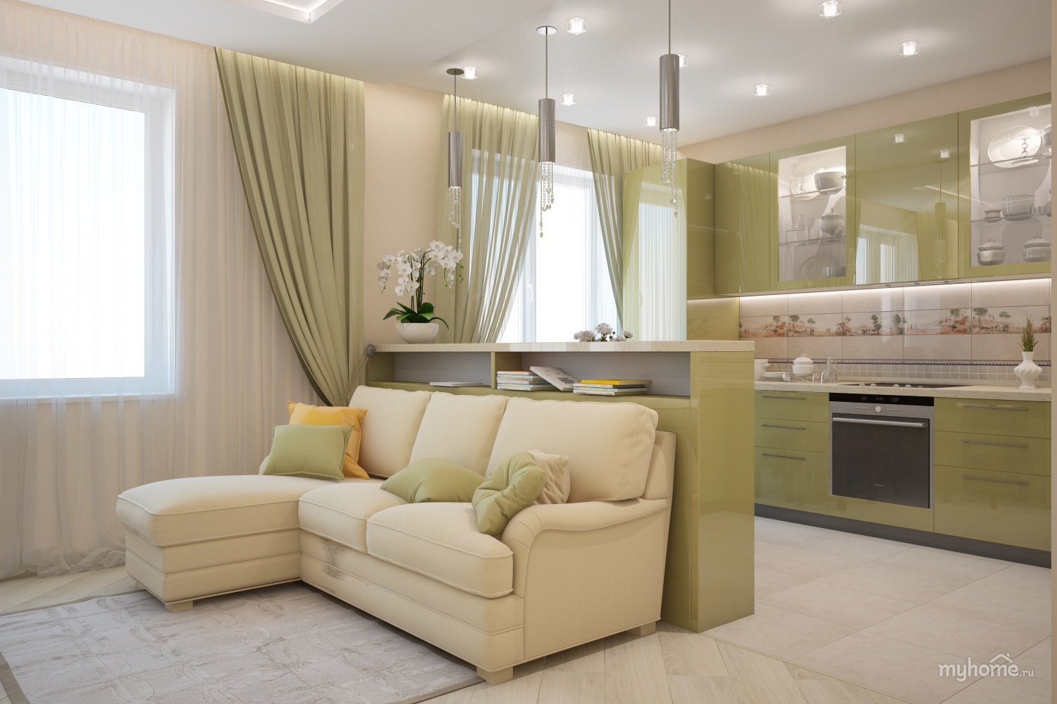 Кухня гостиная с диваном