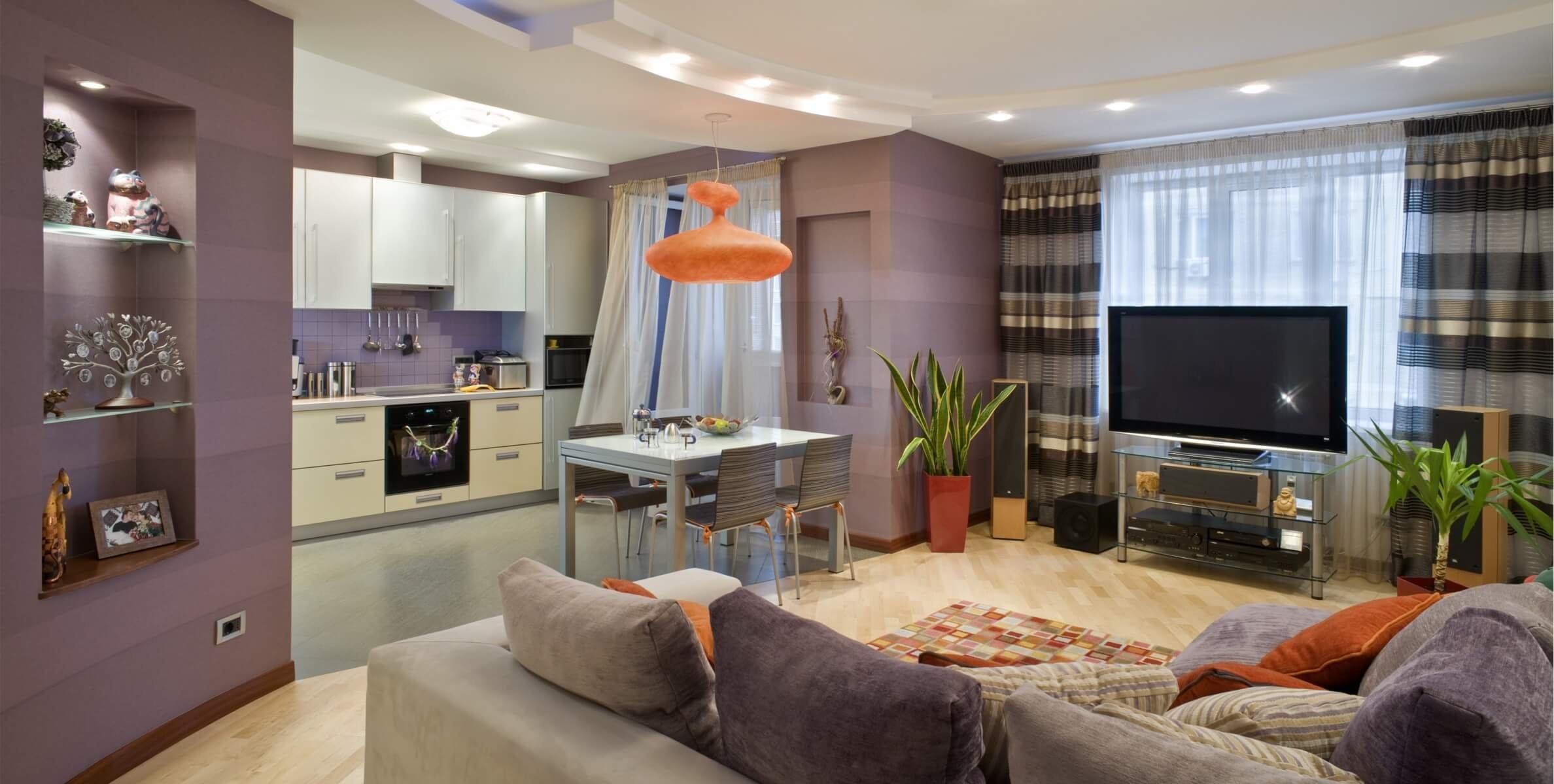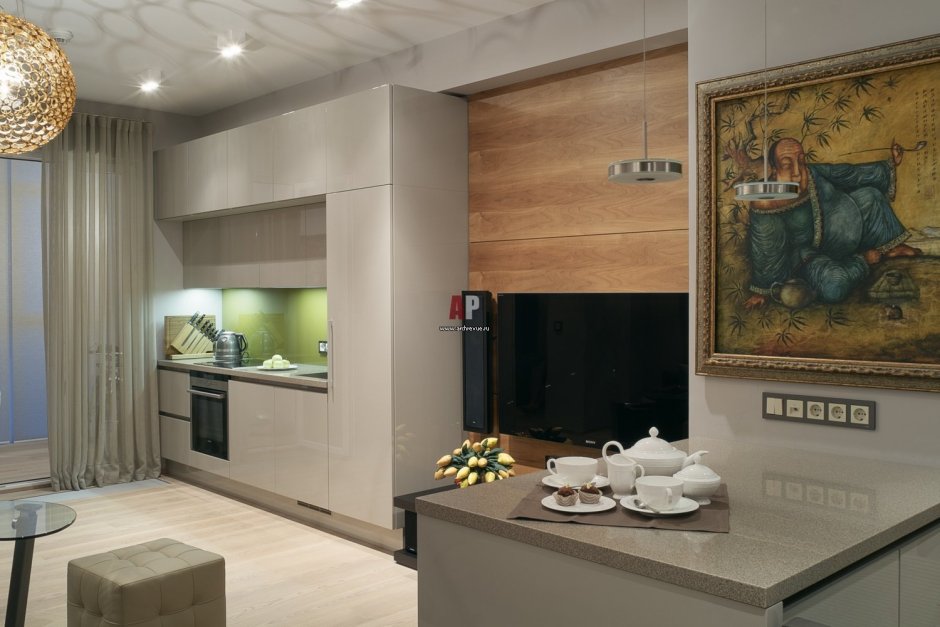 Кухня гостиная с телевизором