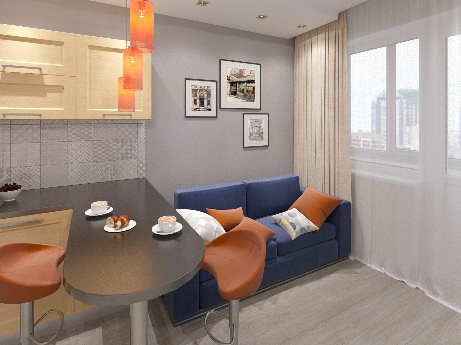 Гостиная с кухонной зоной