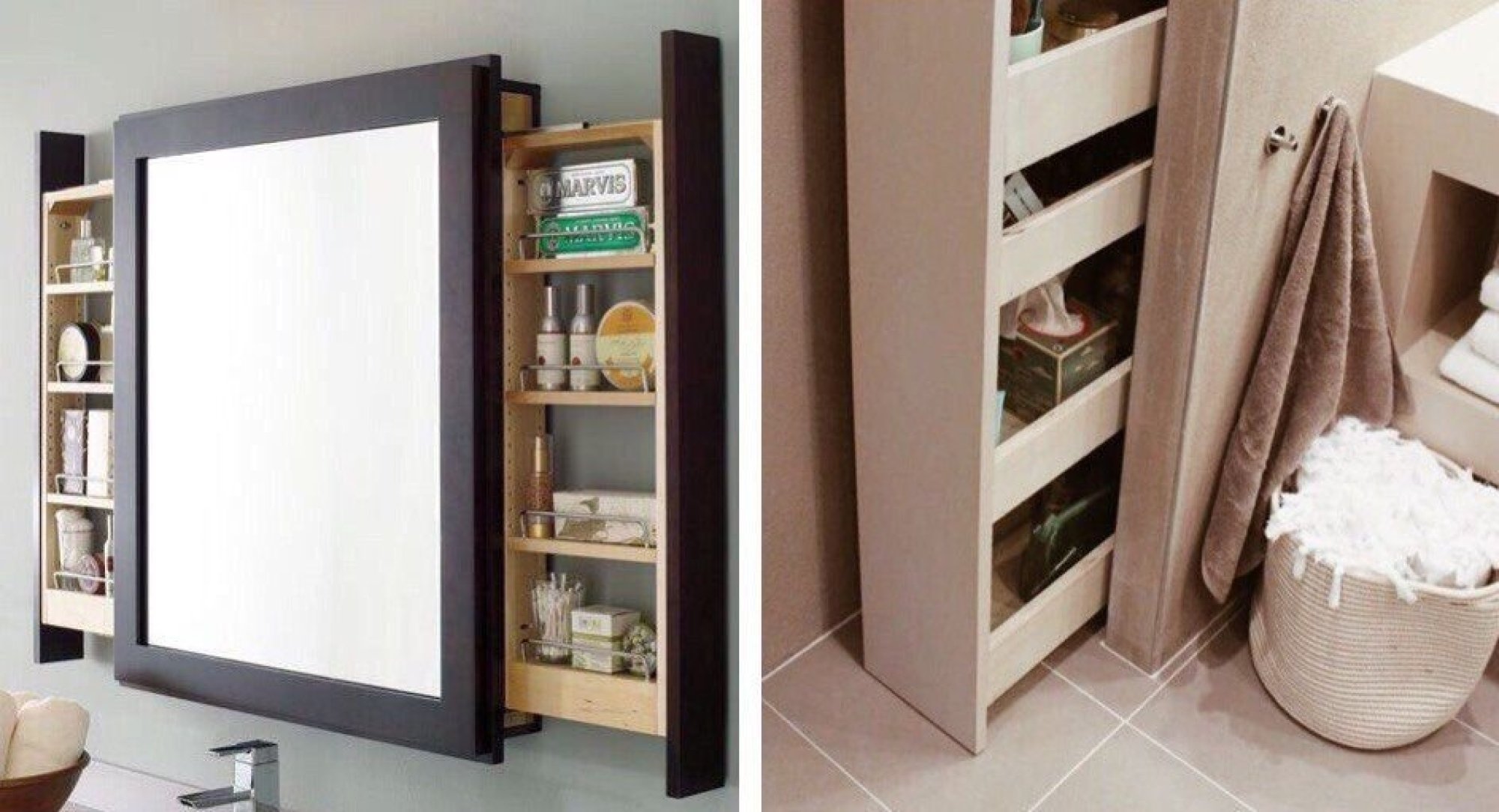 Узкий выдвижной шкаф в ванной