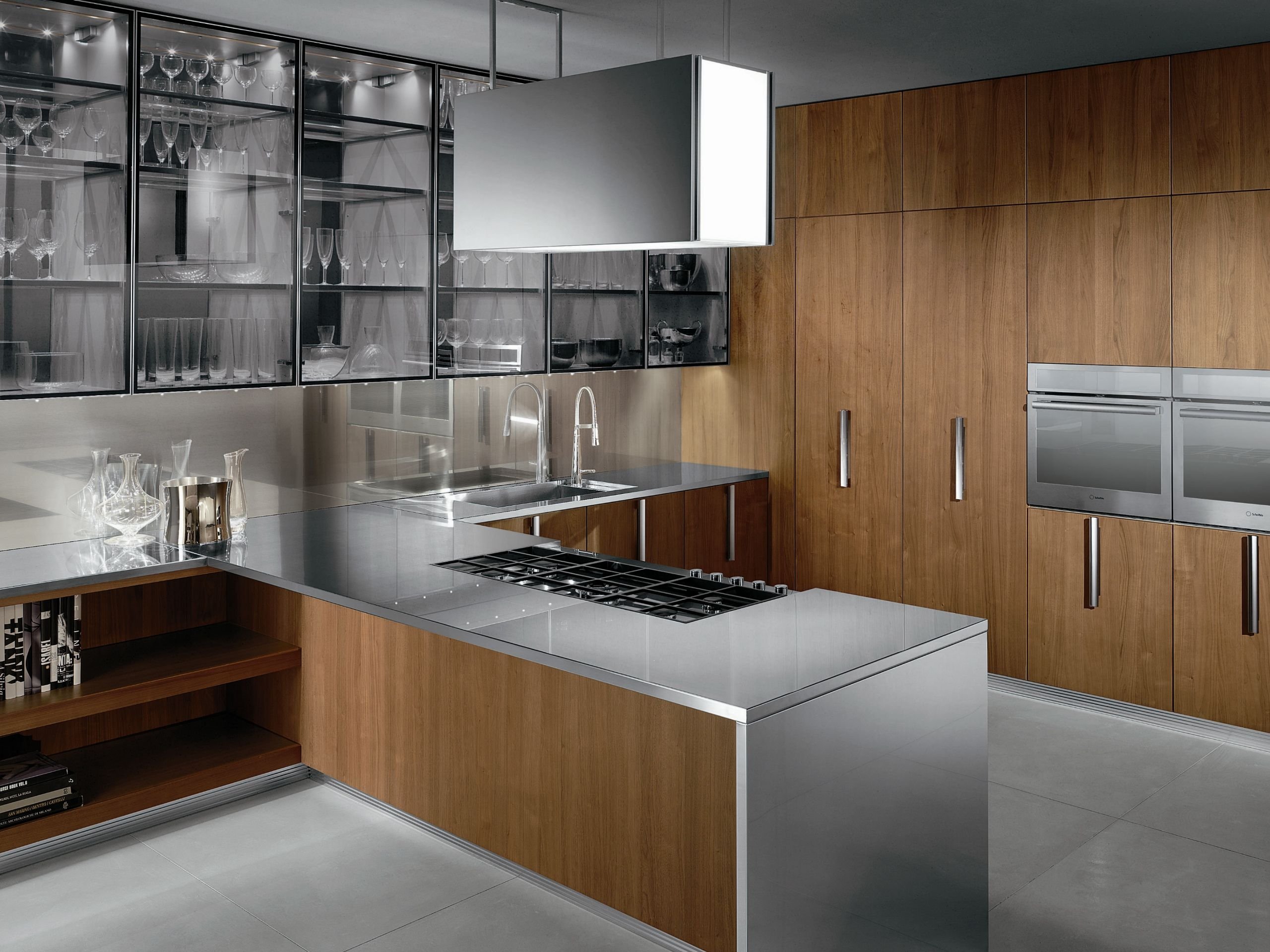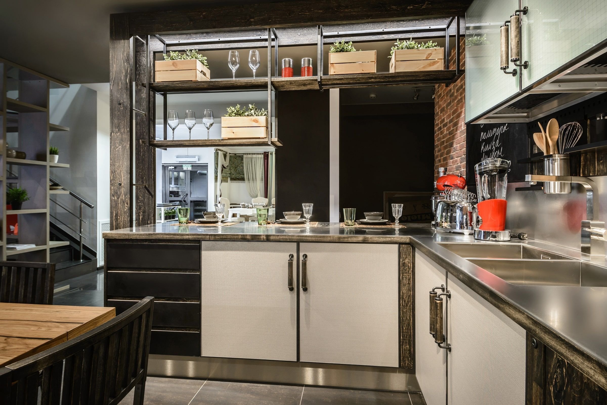 Кухня из нержавеющей стали и дерева