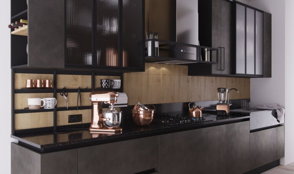Кухня с металлическими фасадами