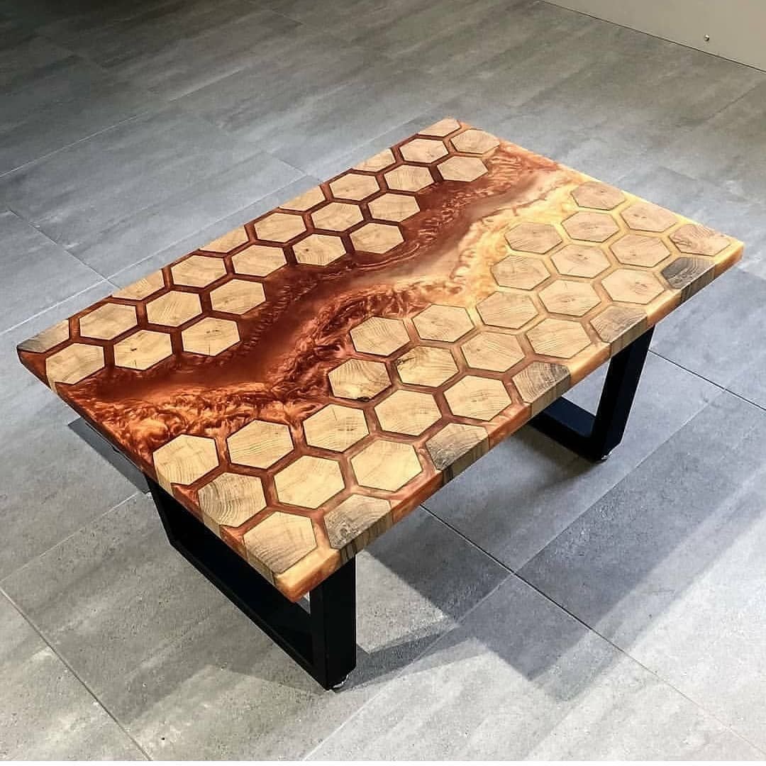 Стол с эпоксидной смолой янтарь