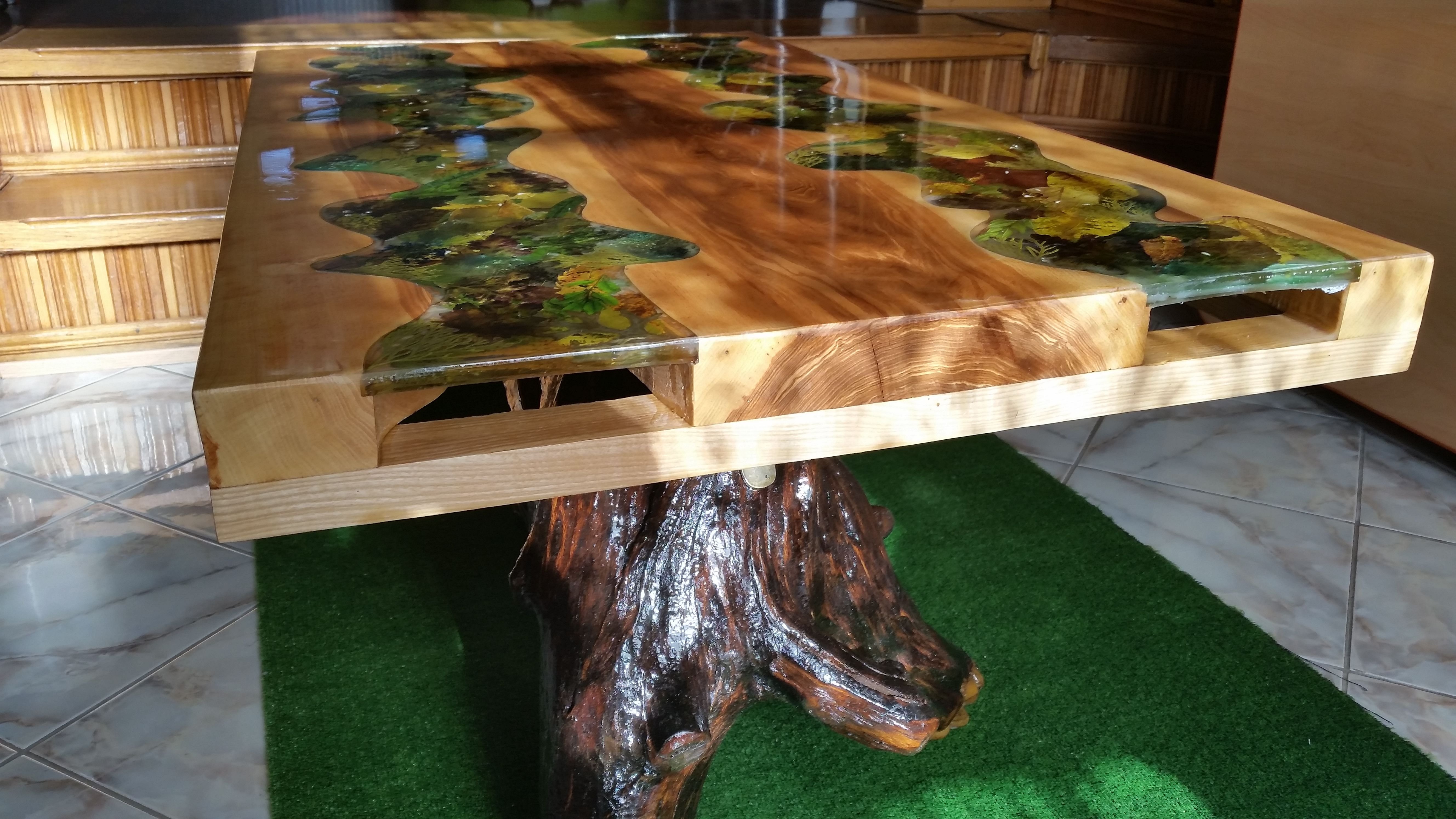 Стол из эпоксидной смолы и дерева и мха