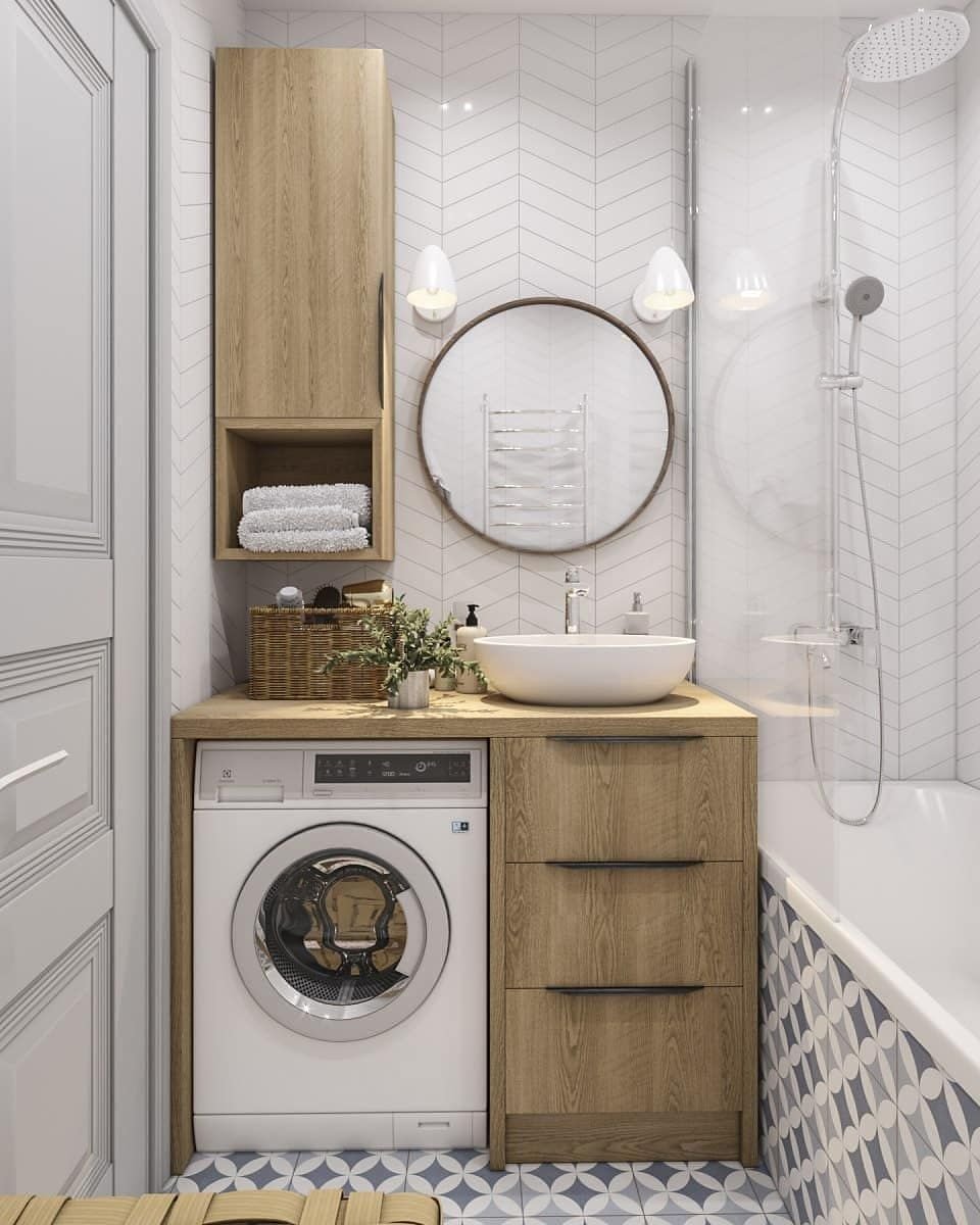 Маленькая ванная со стиралкой и раковиной