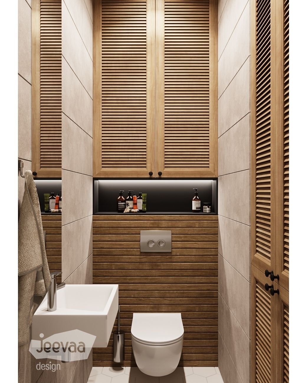 Деревянный шкаф в туалете