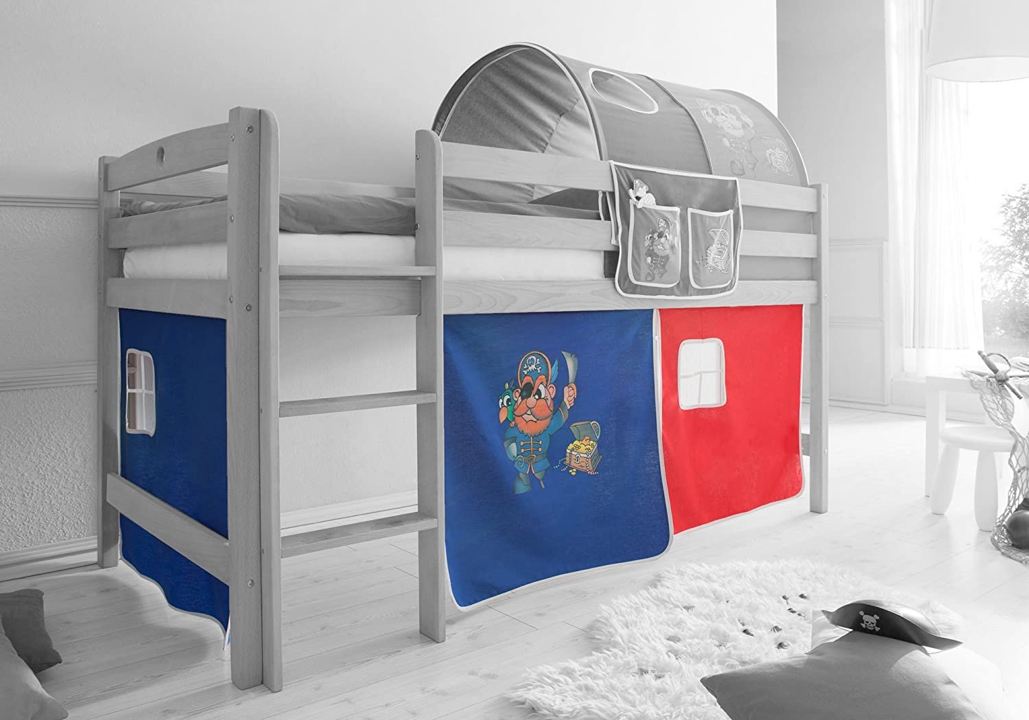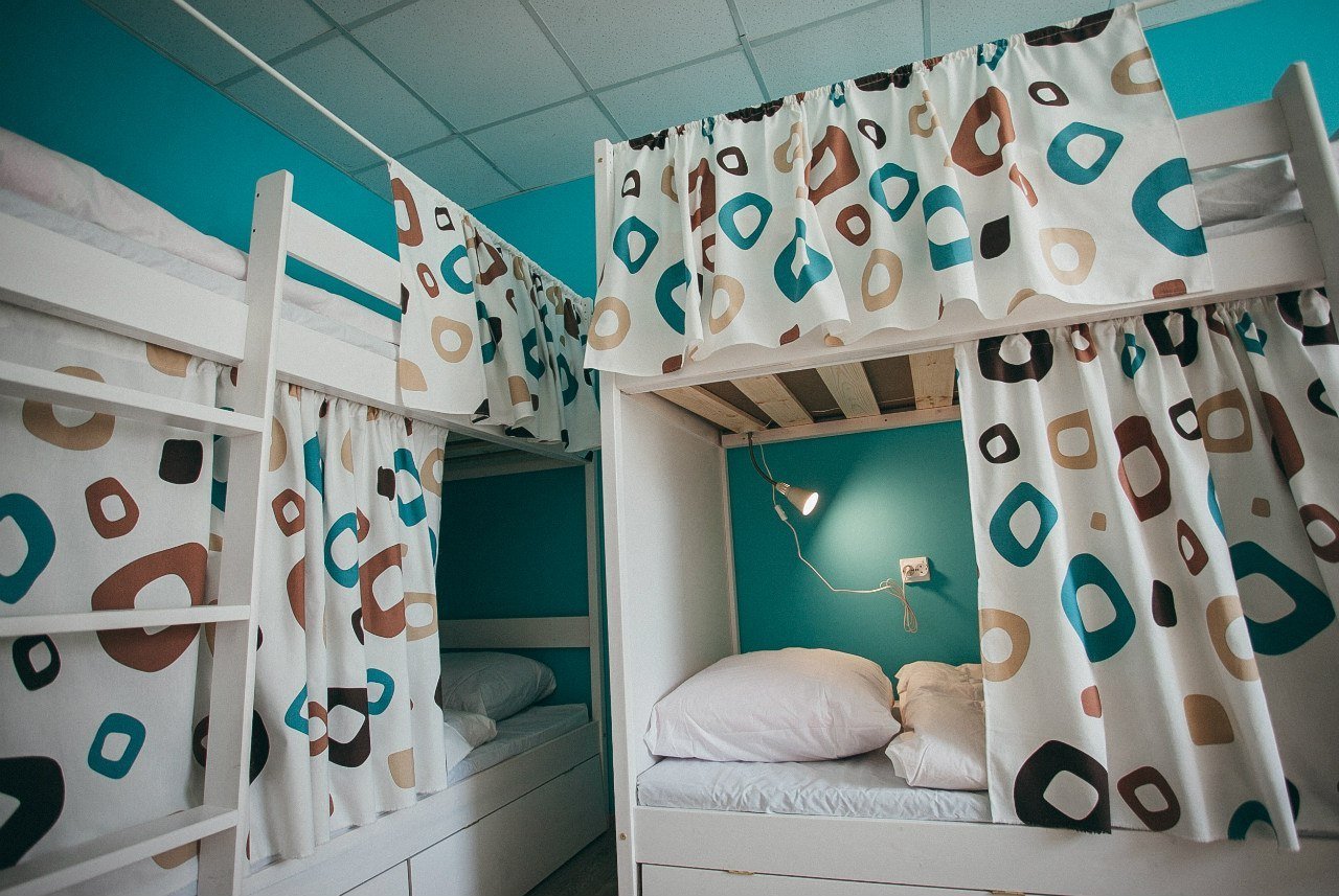 Двухъярусная кровать с занавесками
