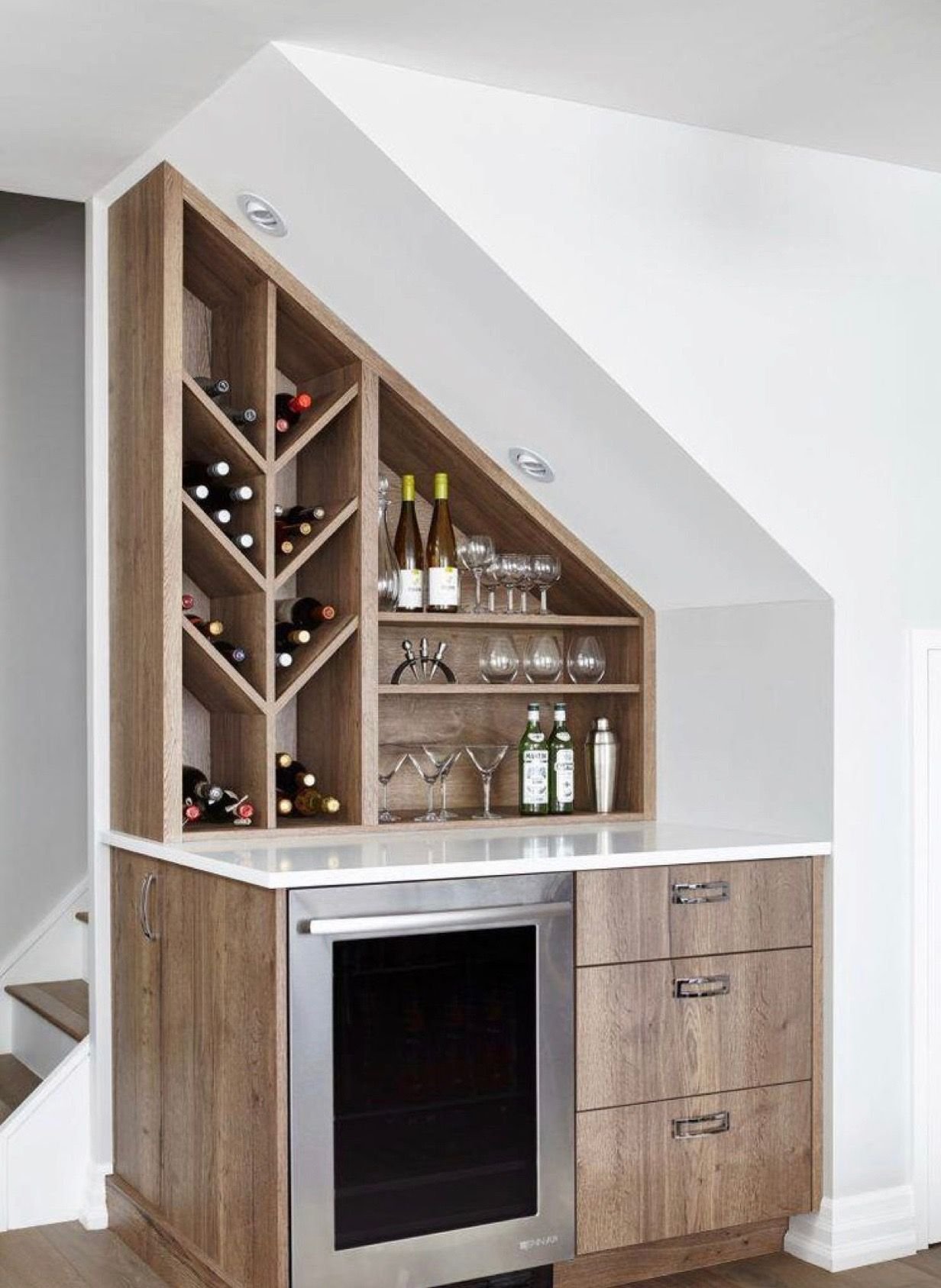 Барный шкаф под лестницей