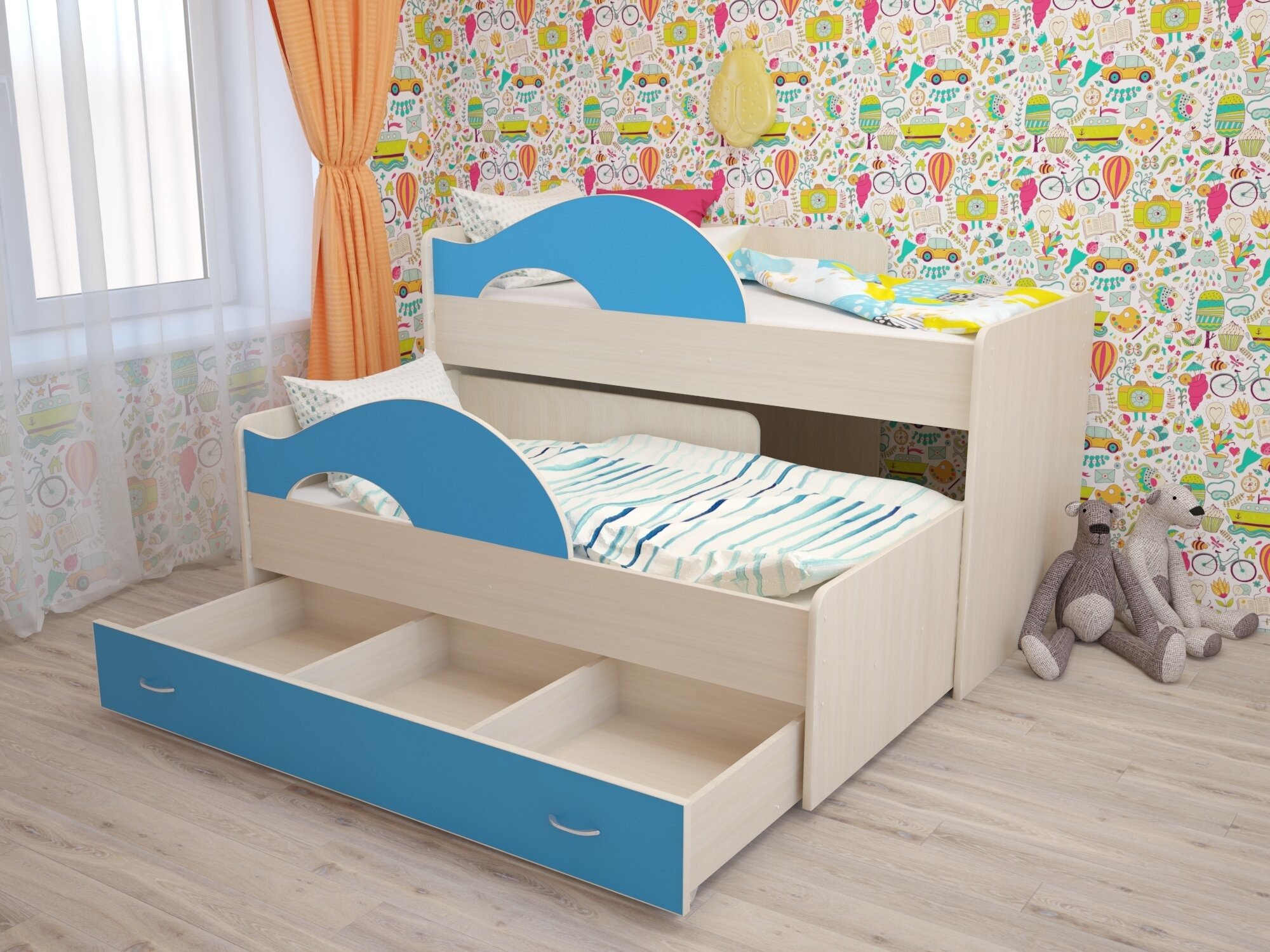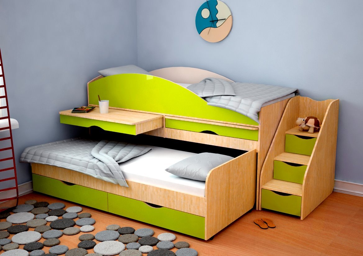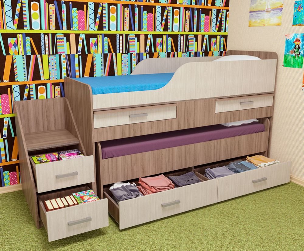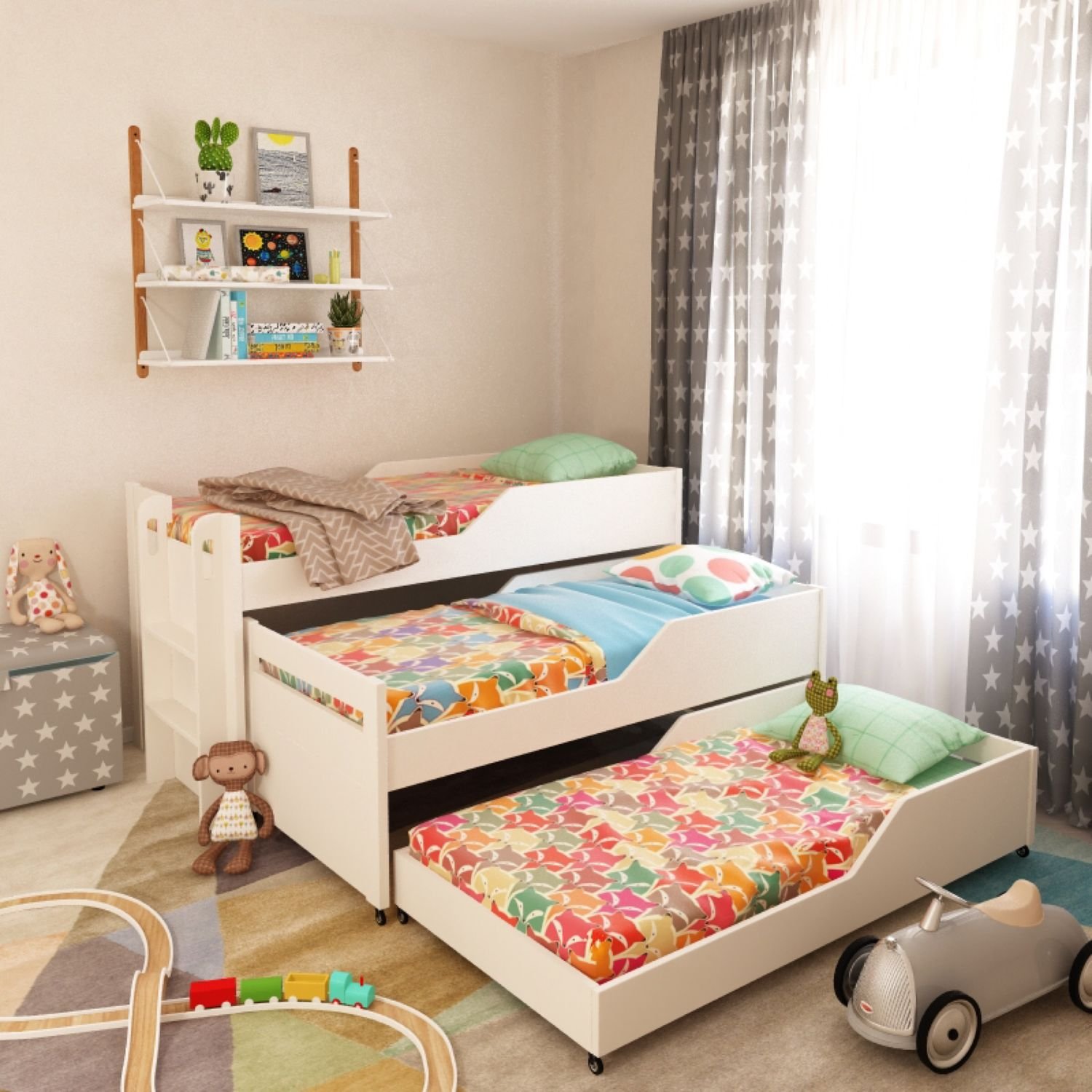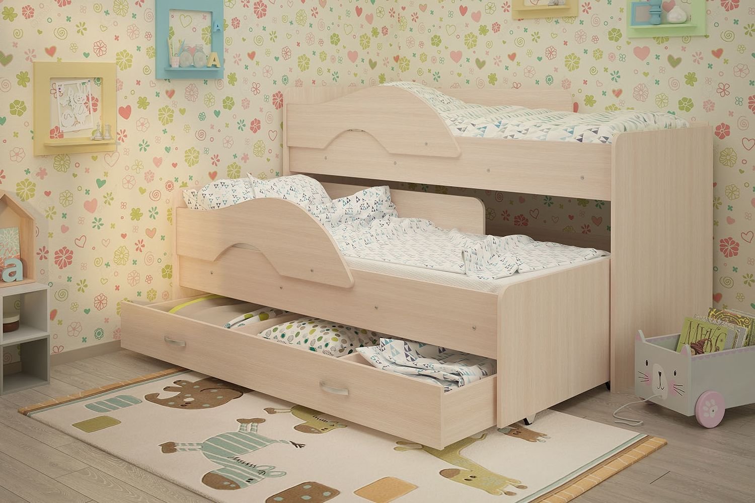 Кровать детская раздвижная 3 яруса с тумбой Матрешка-2