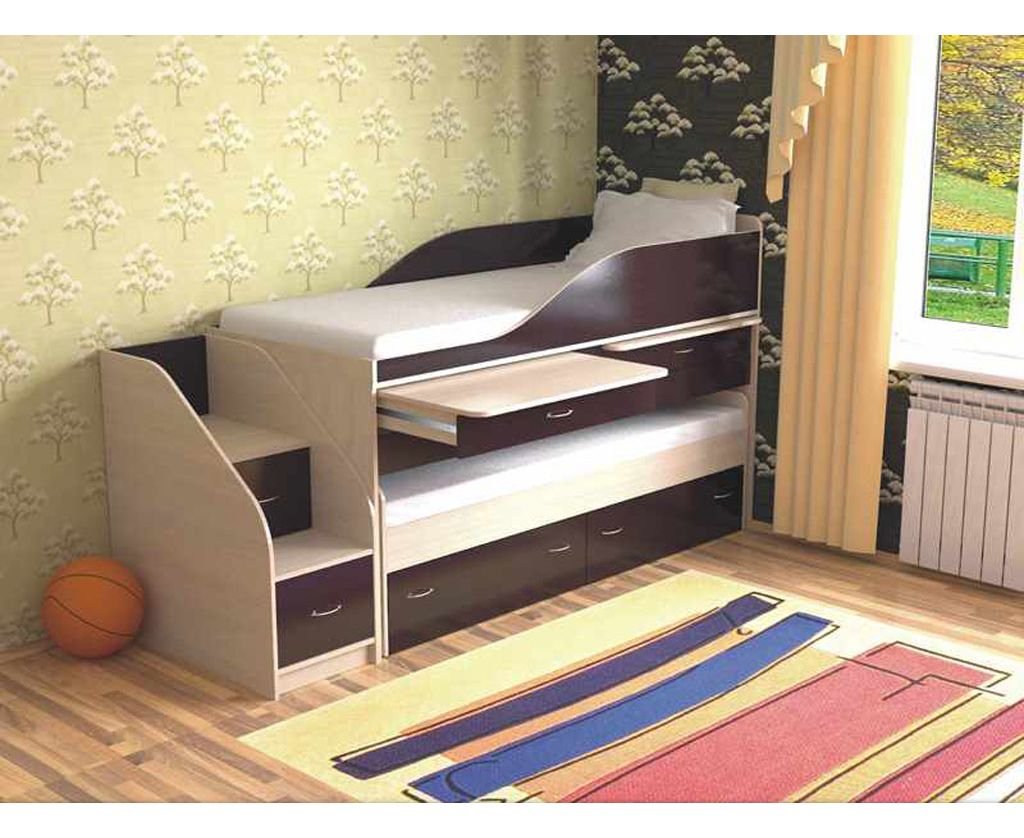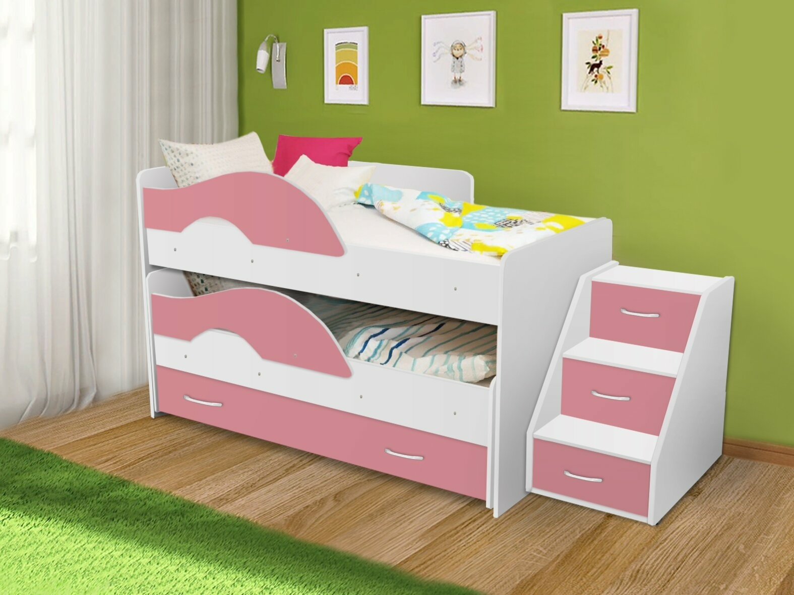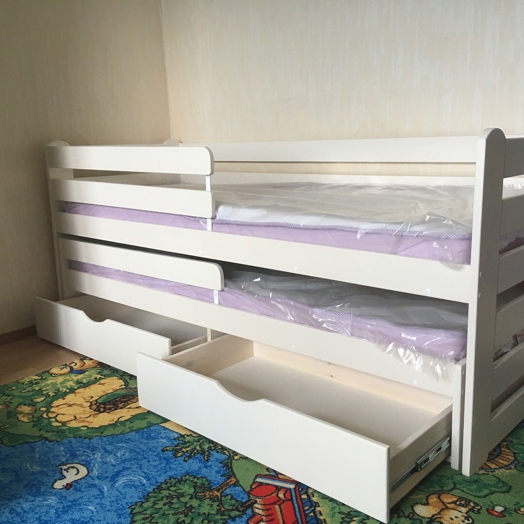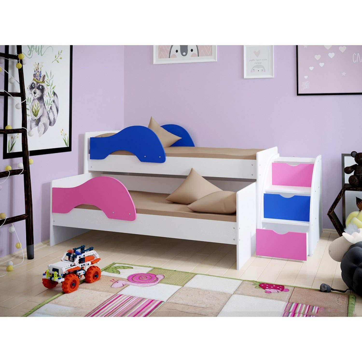 Кровать детская раздвижная 3 яруса с тумбой Матрешка-2
