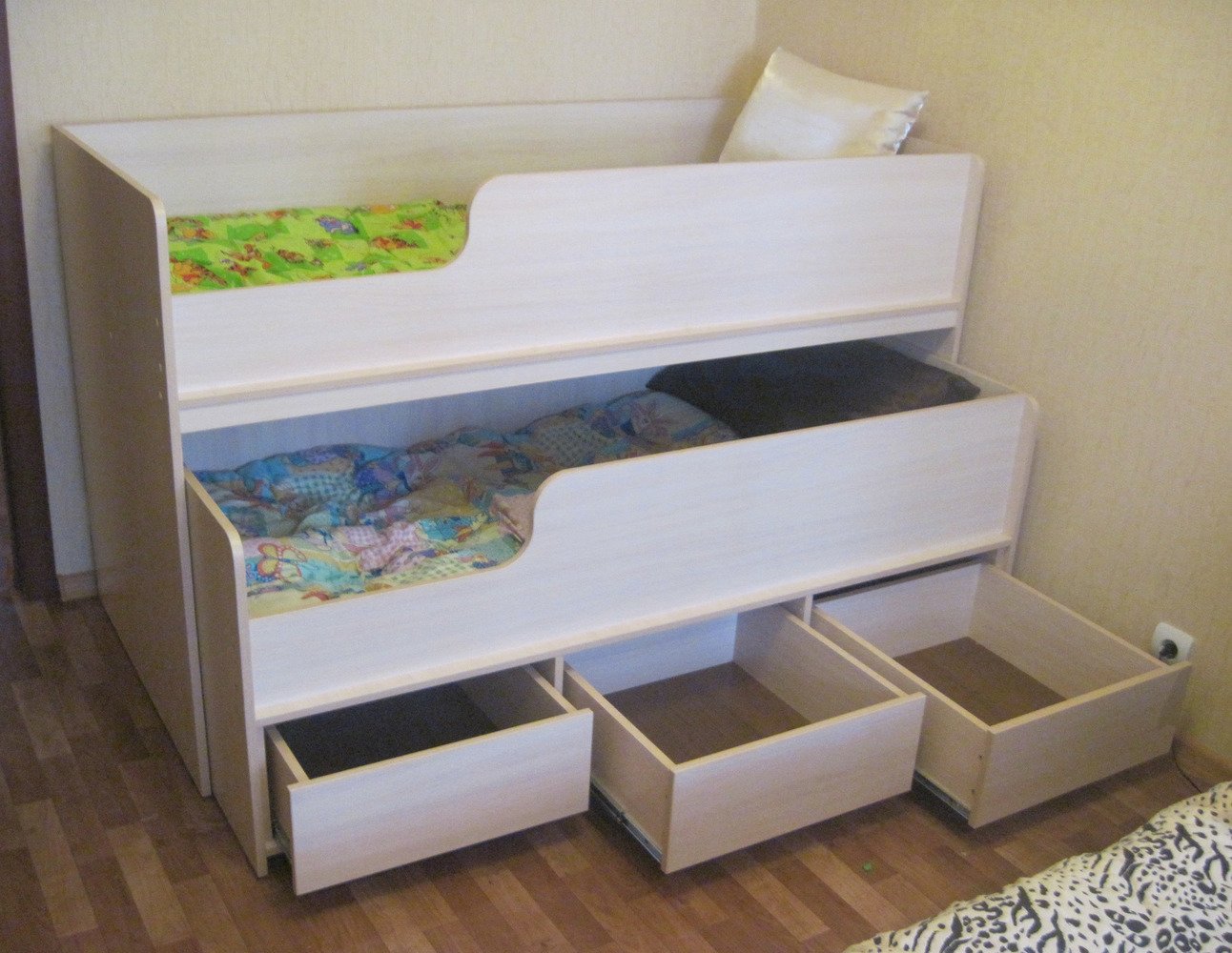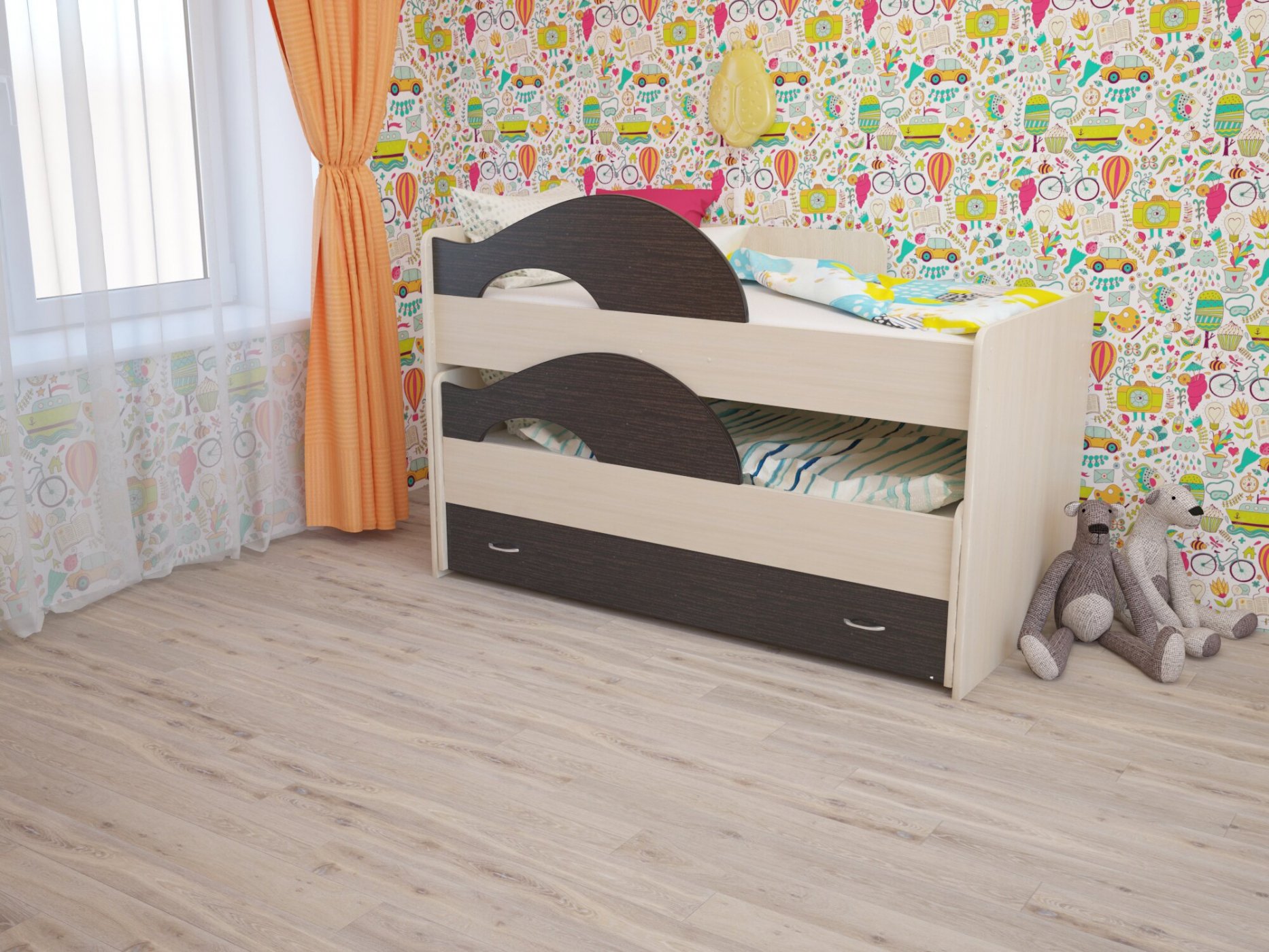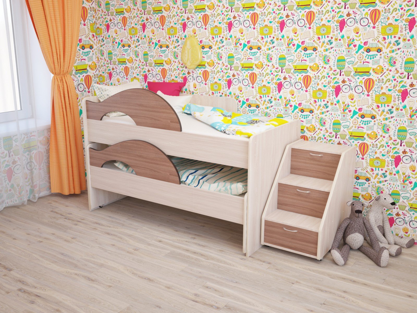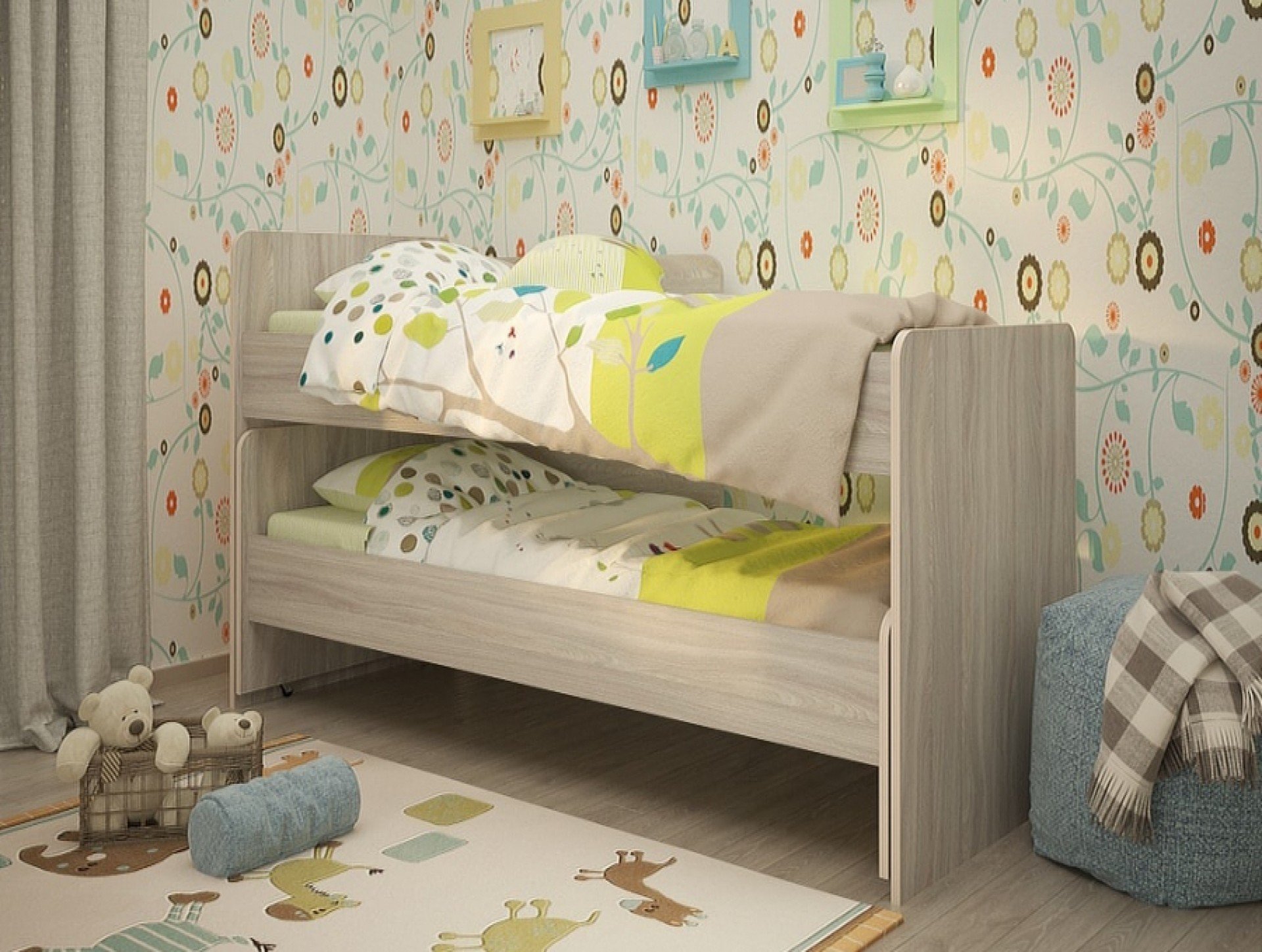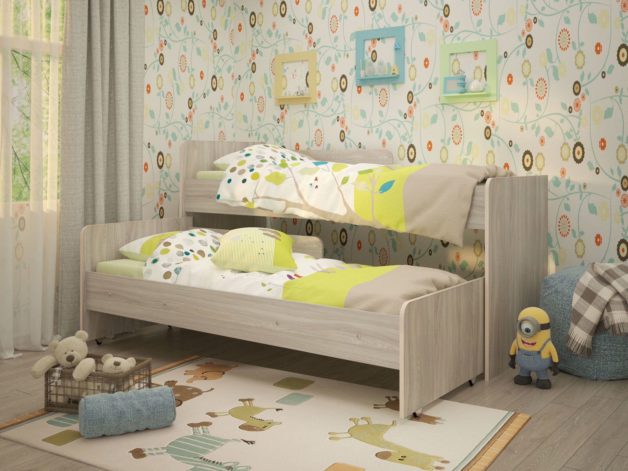 Кровать двухъярусная выкатная Матрешка 800х1600 с ящиком Млечный дуб