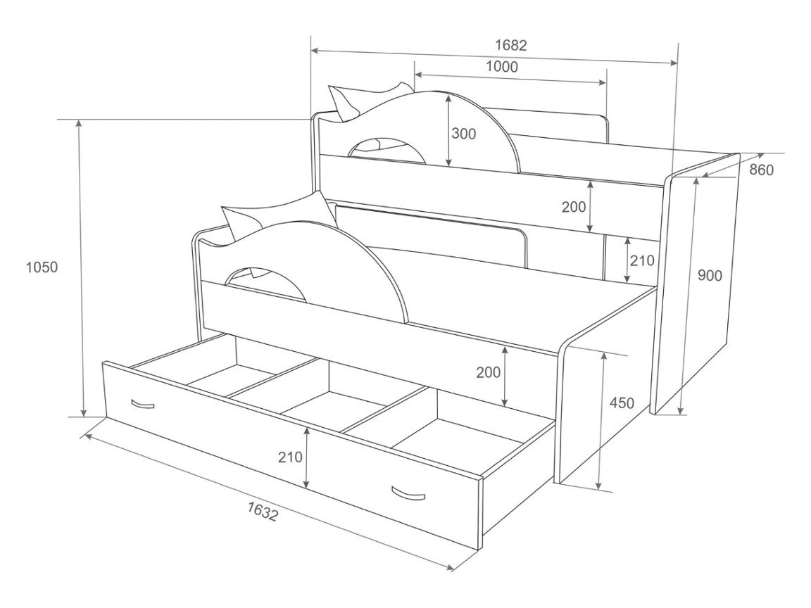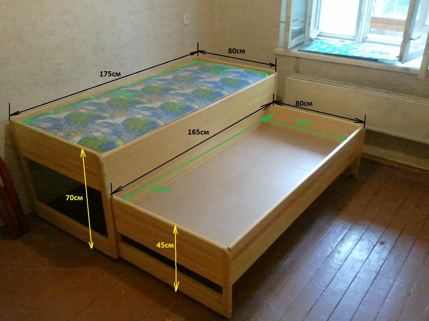 Детская выкатная кровать "Радуга" 1600 мм ("Матрешка")