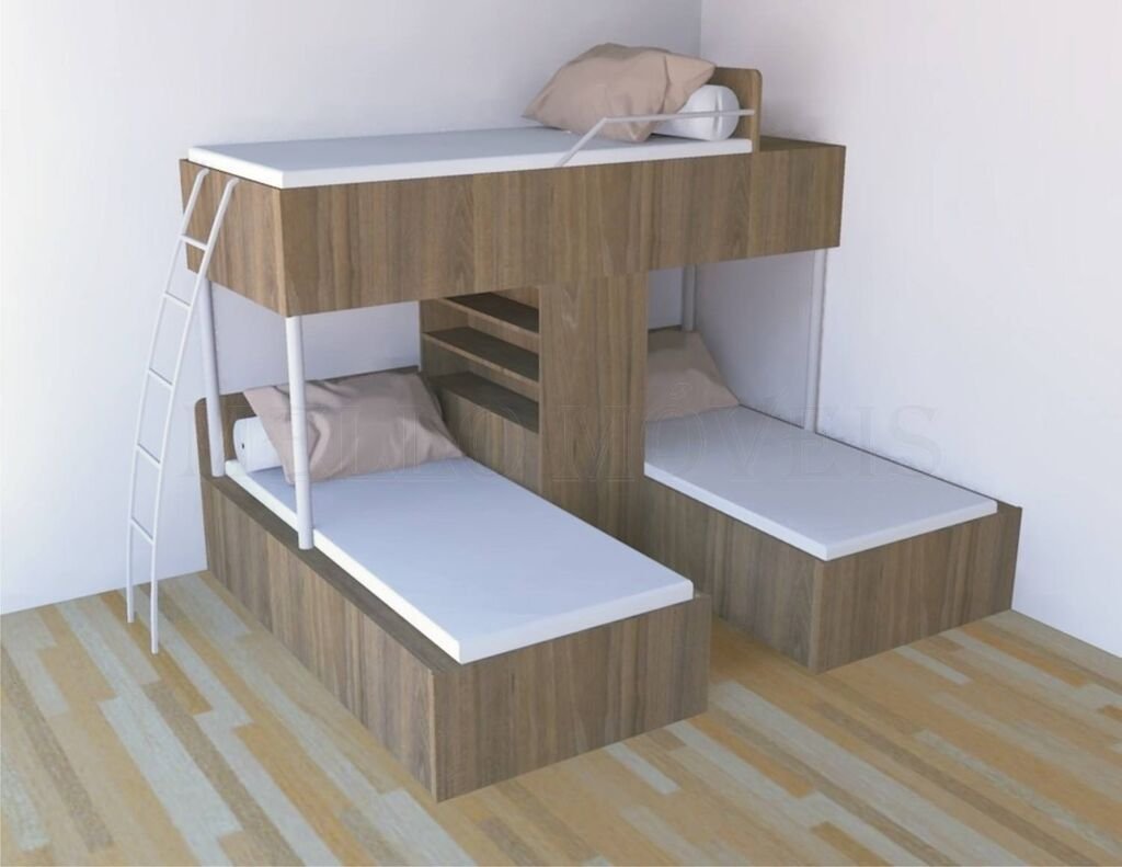 Кровать детская 20 (ЛДСП)трёхъярусная в тумбе