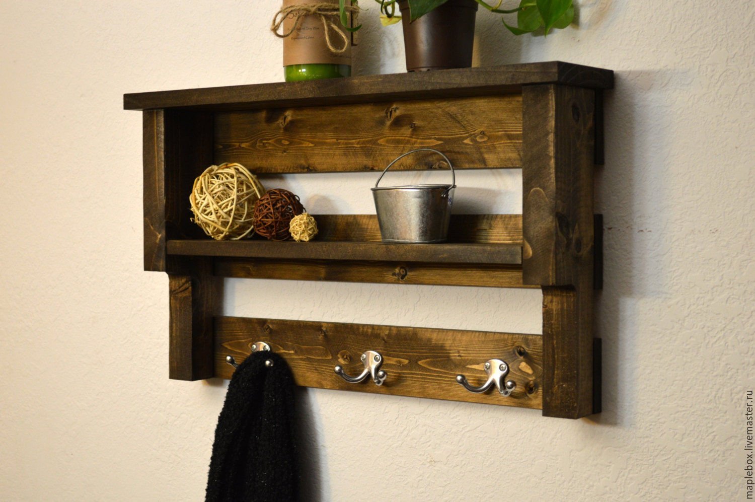 Деревянная полка в прихожую