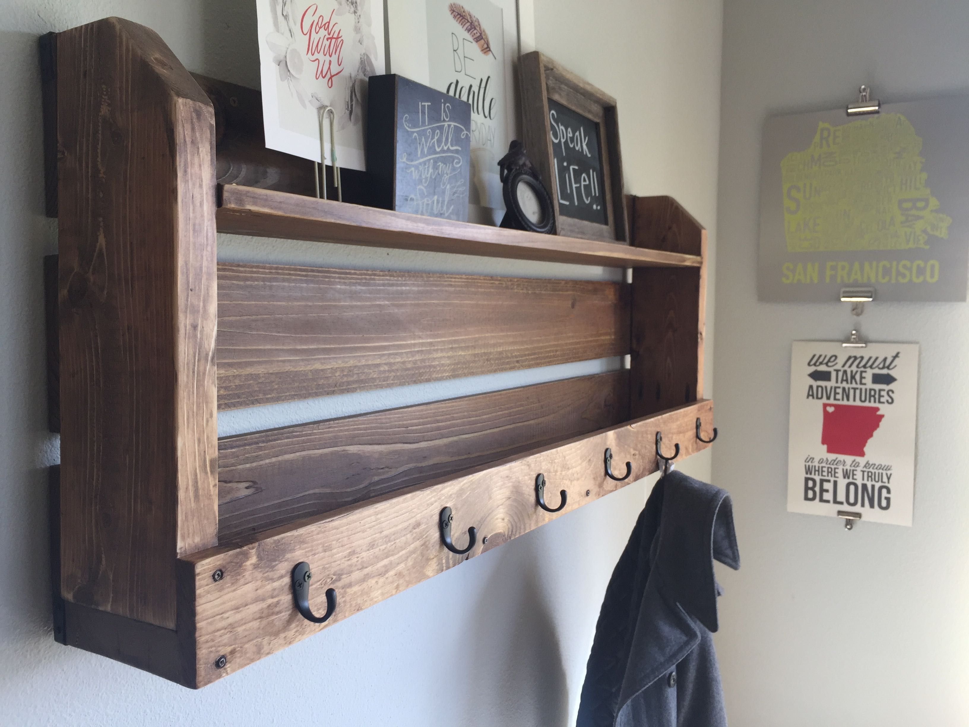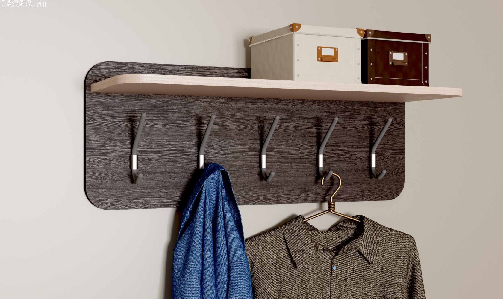 Полка с крючками для прихожей