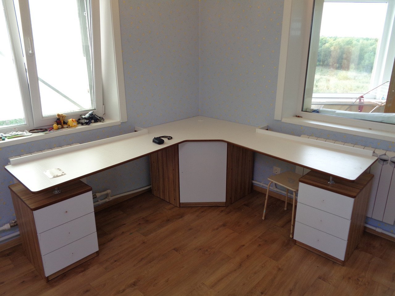 Угловой письменный стол для двоих детей