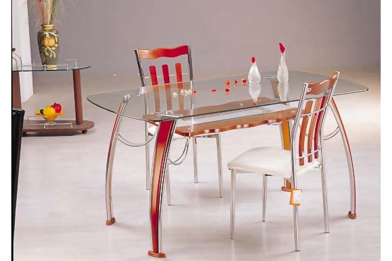 Кухонные столы и стулья красные стеклянные
