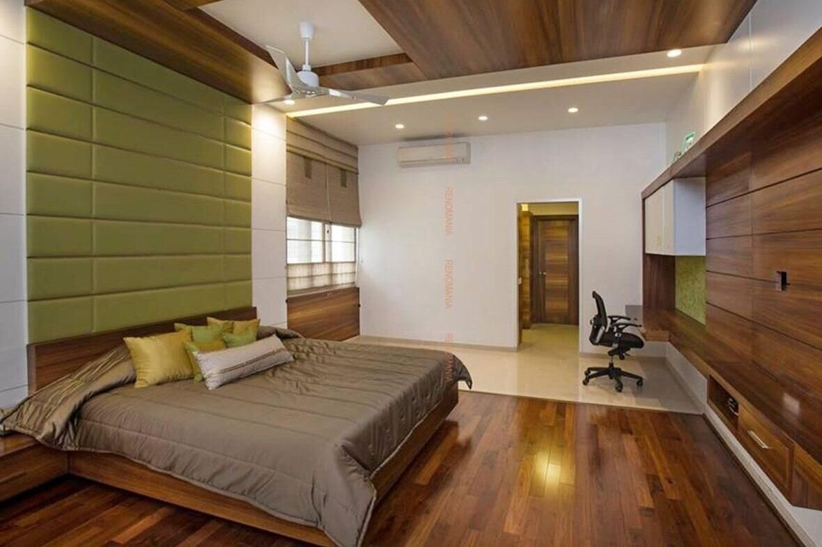 Планкен потолок в спальне