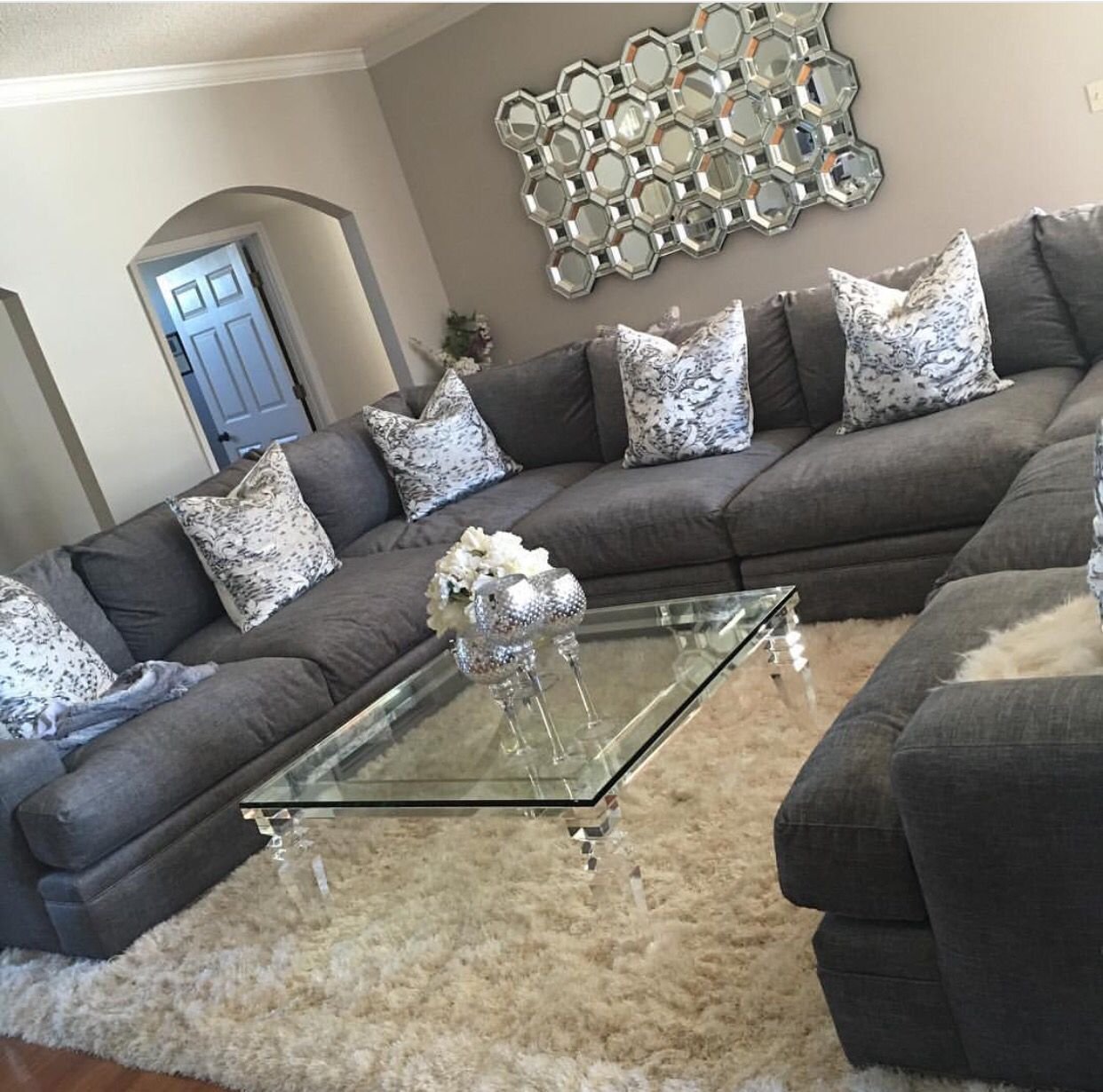 Серый угловой диван в интерьере