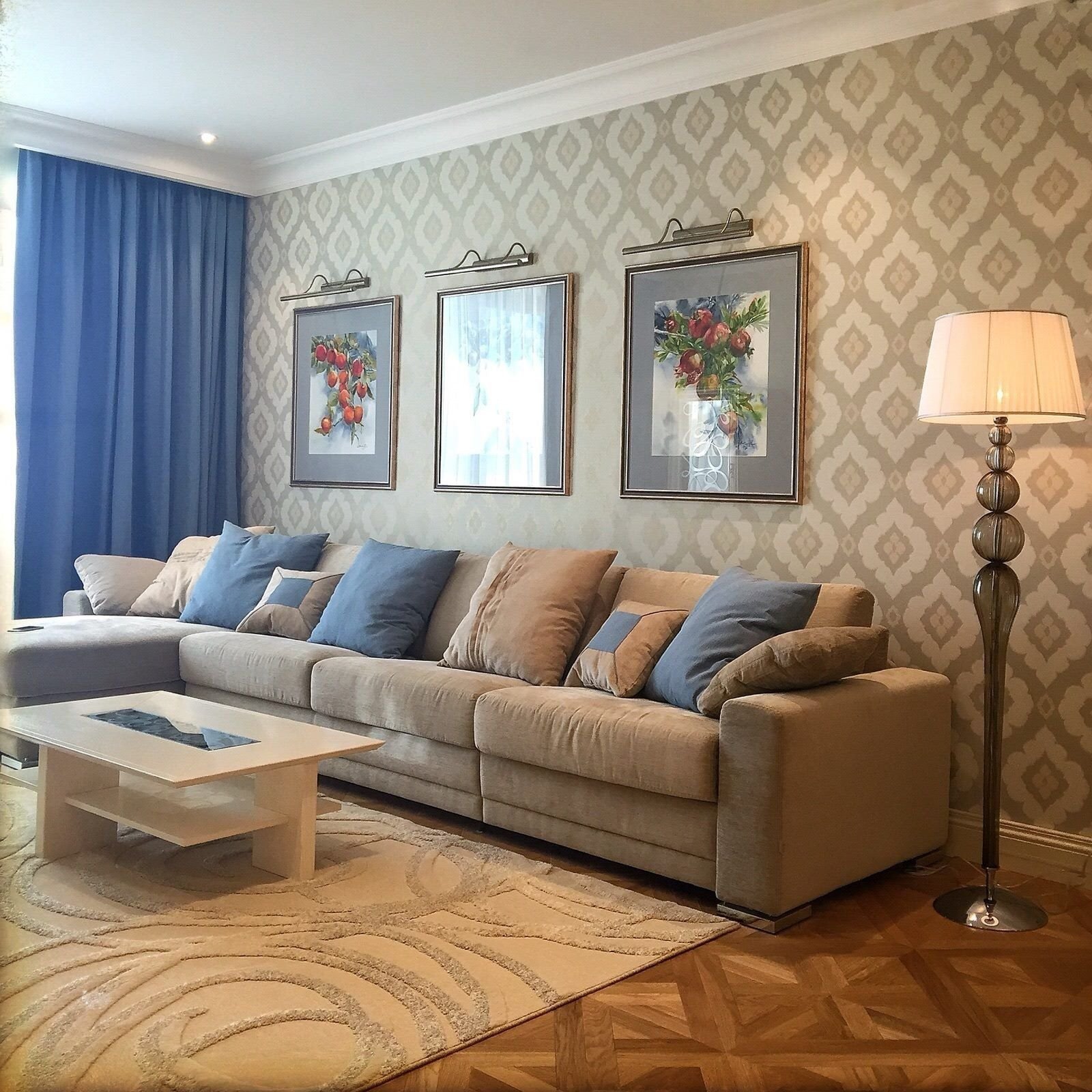 Интерьер под серый диван