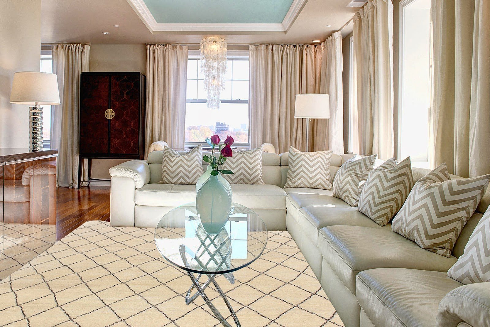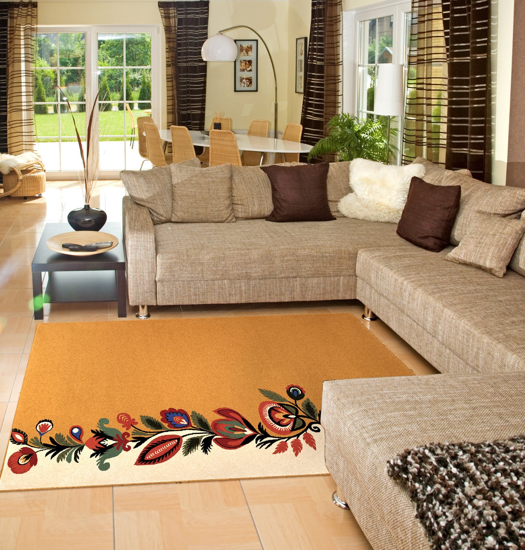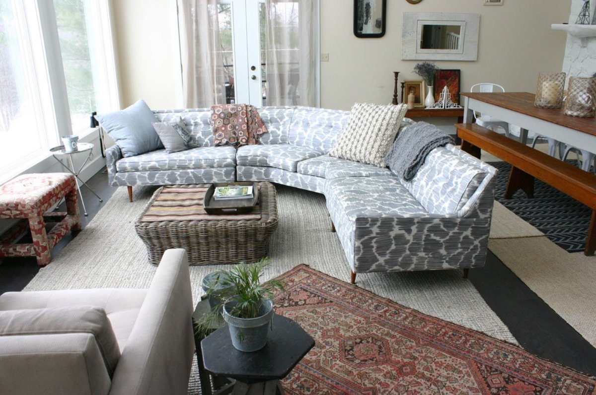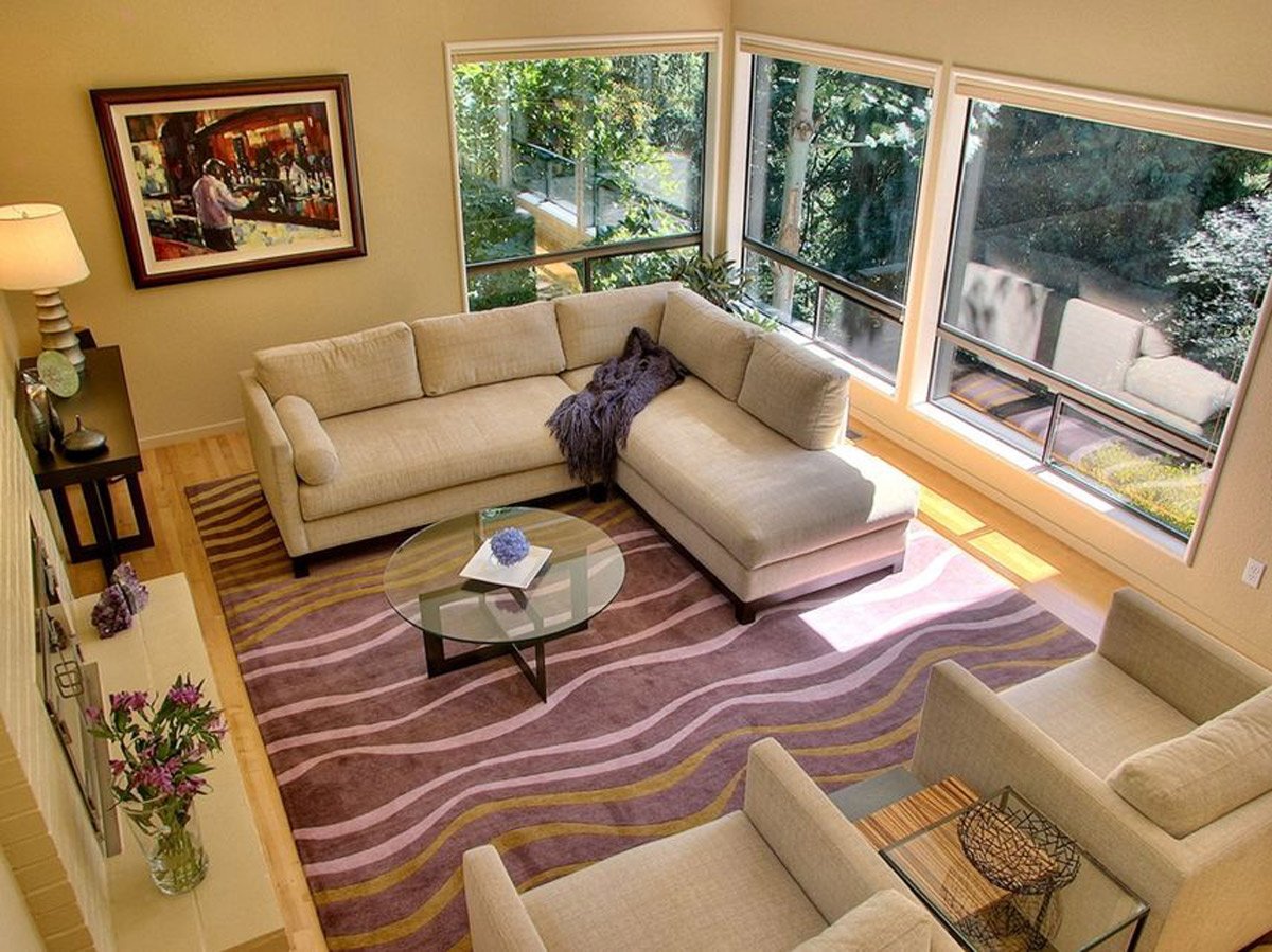 Угловой диван и ковер в интерьере