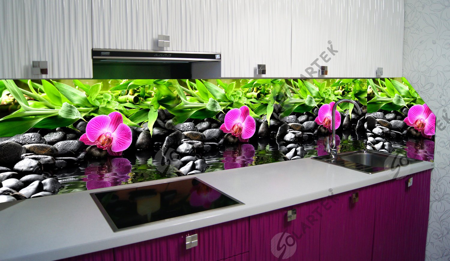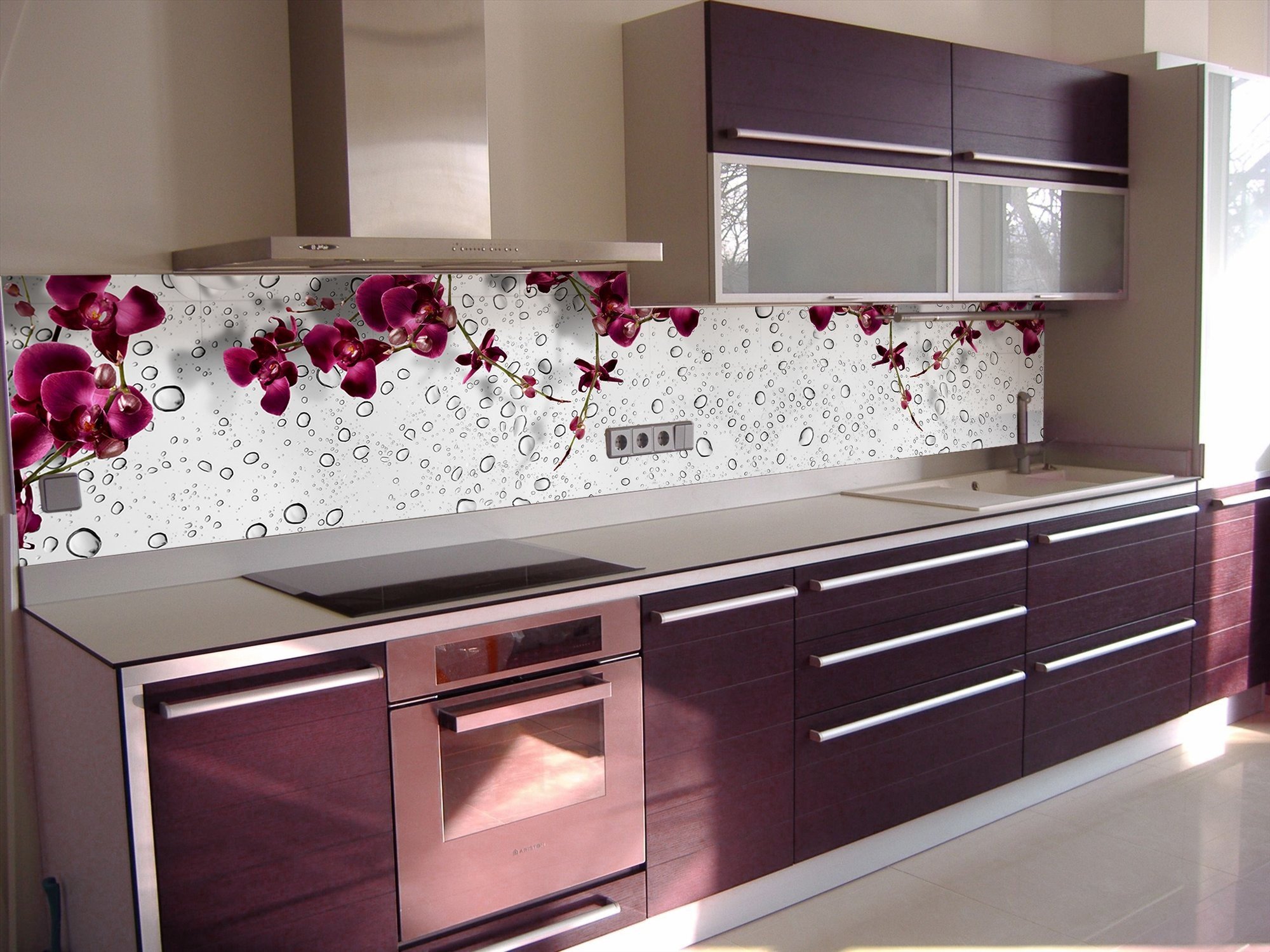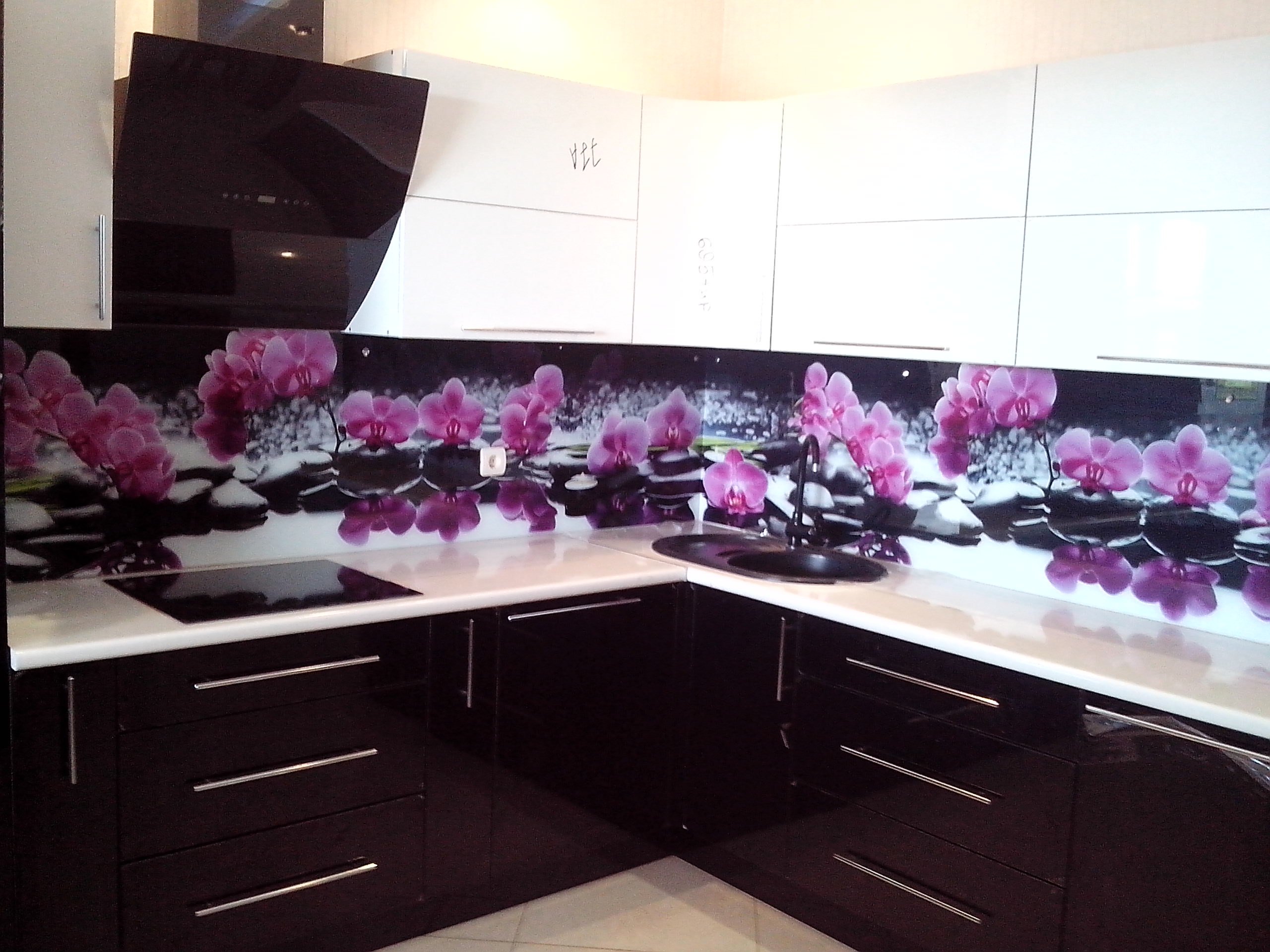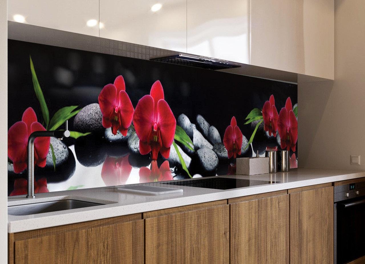 Стеклянный фартук для кухни с орхидеями