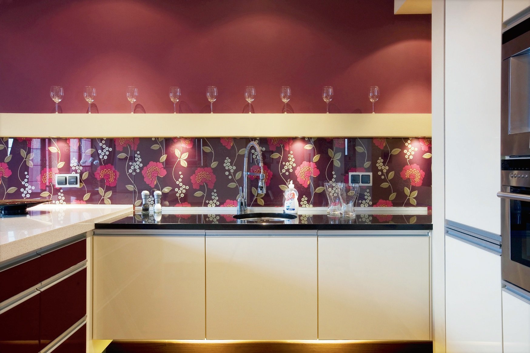 Стеновые панели для красной кухни фартук