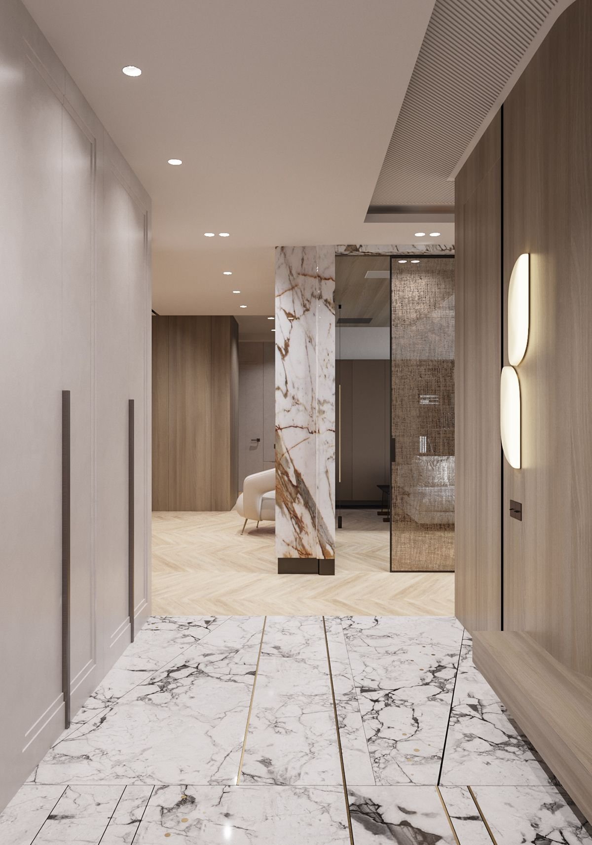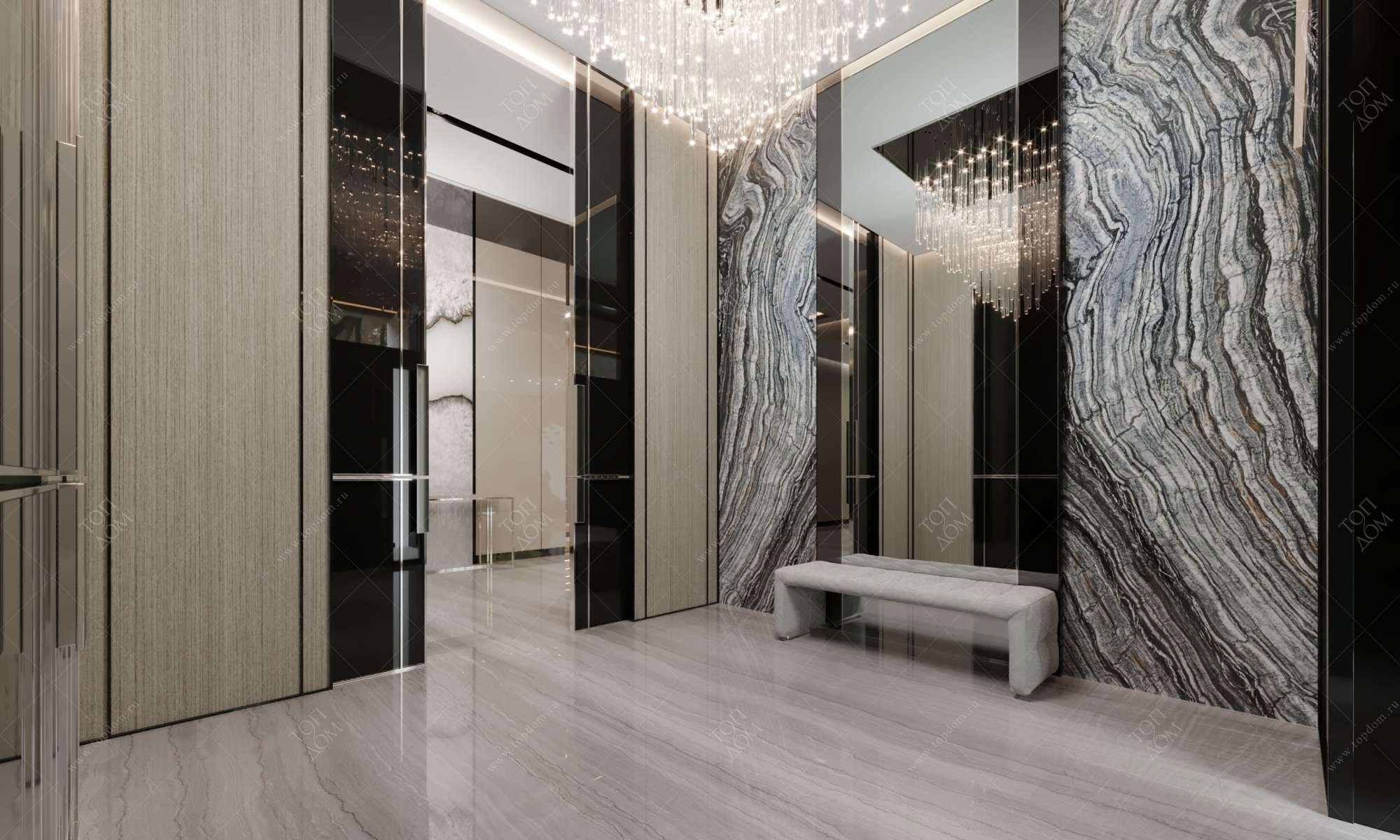 Мраморная стена в прихожей