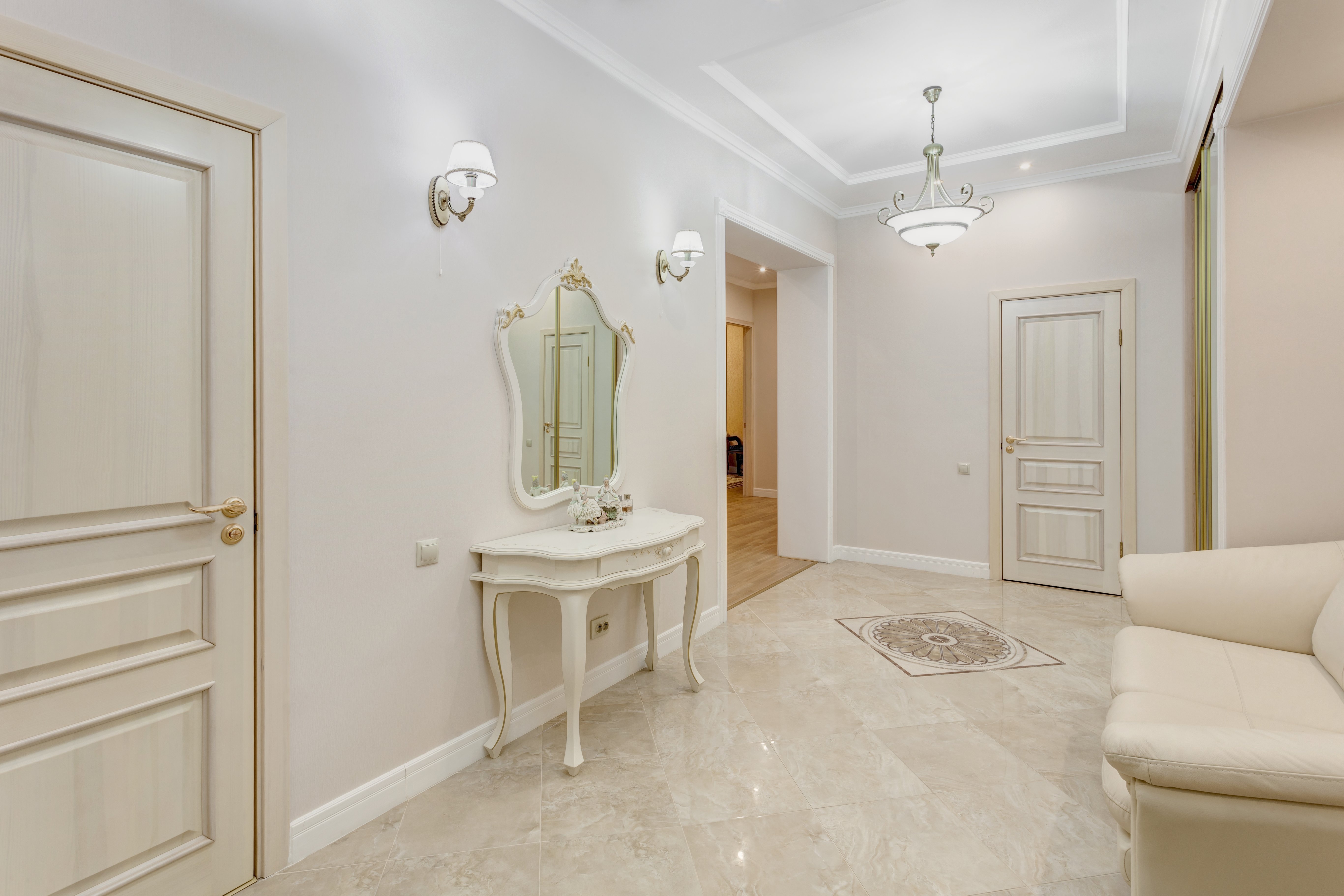 Белый мраморный пол в прихожей