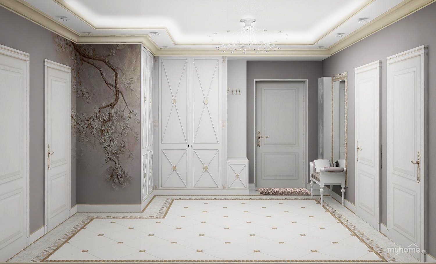 Серая прихожая Неоклассика
