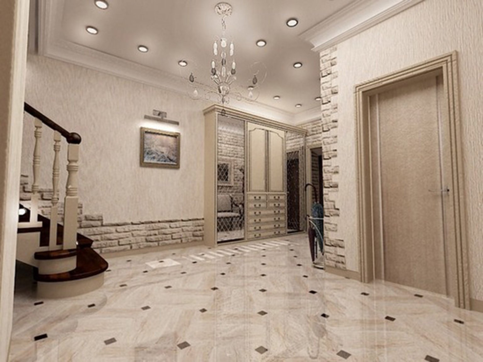 Прихожая под белый мрамор