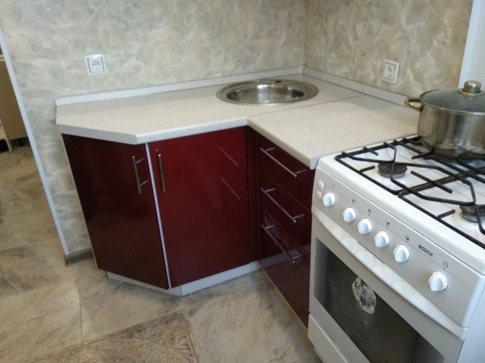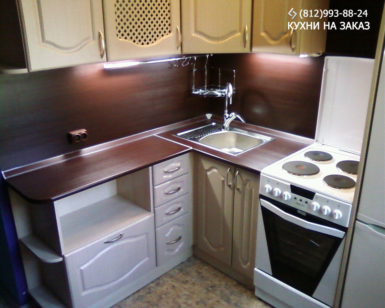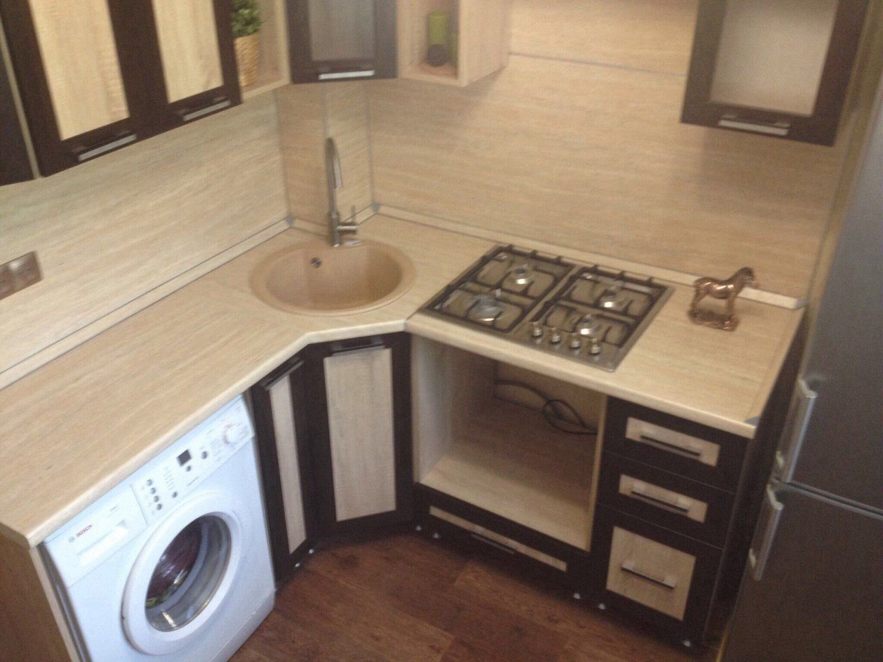 Угловая кухня с мойкой в углу для маленькой кухни