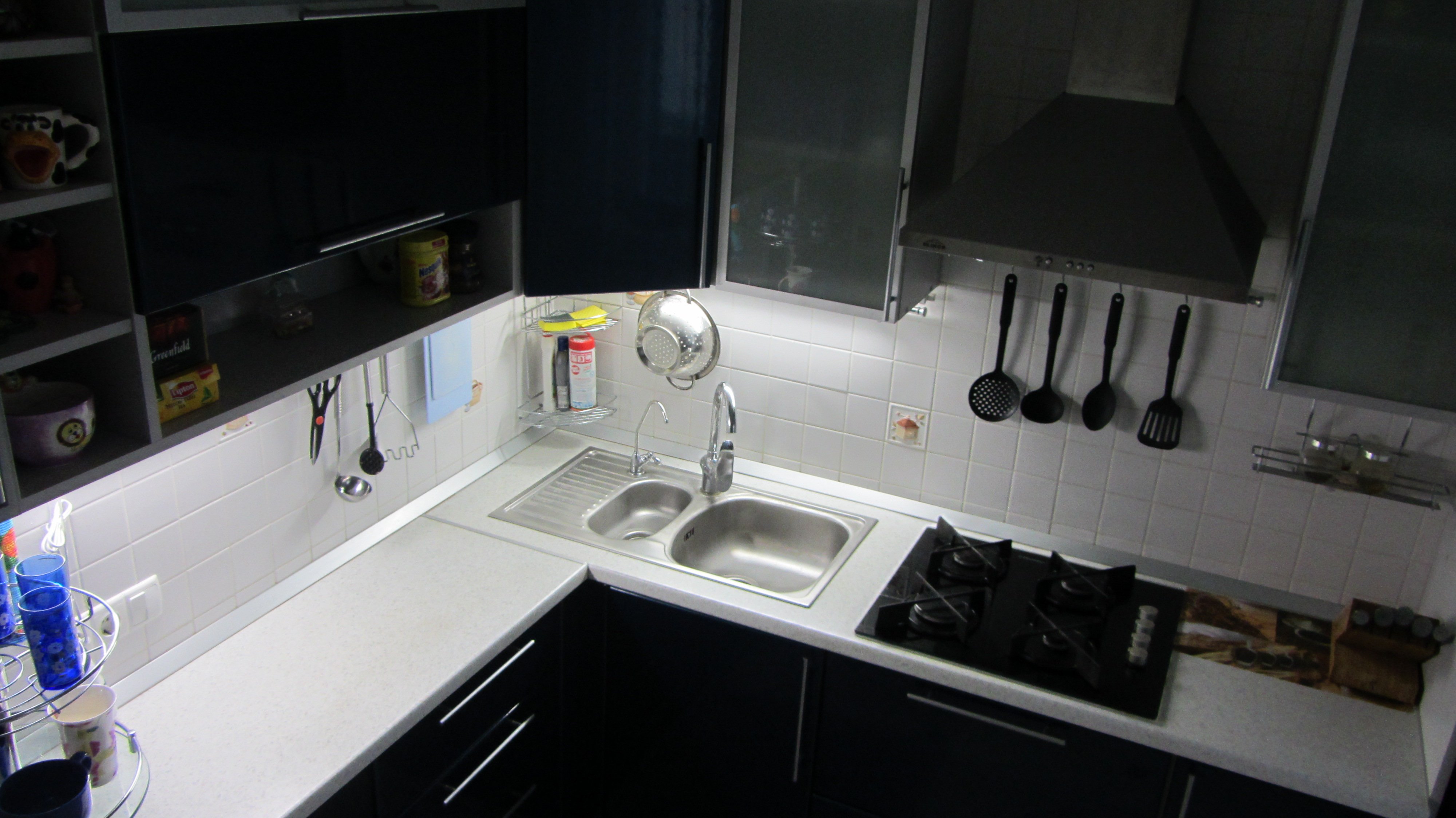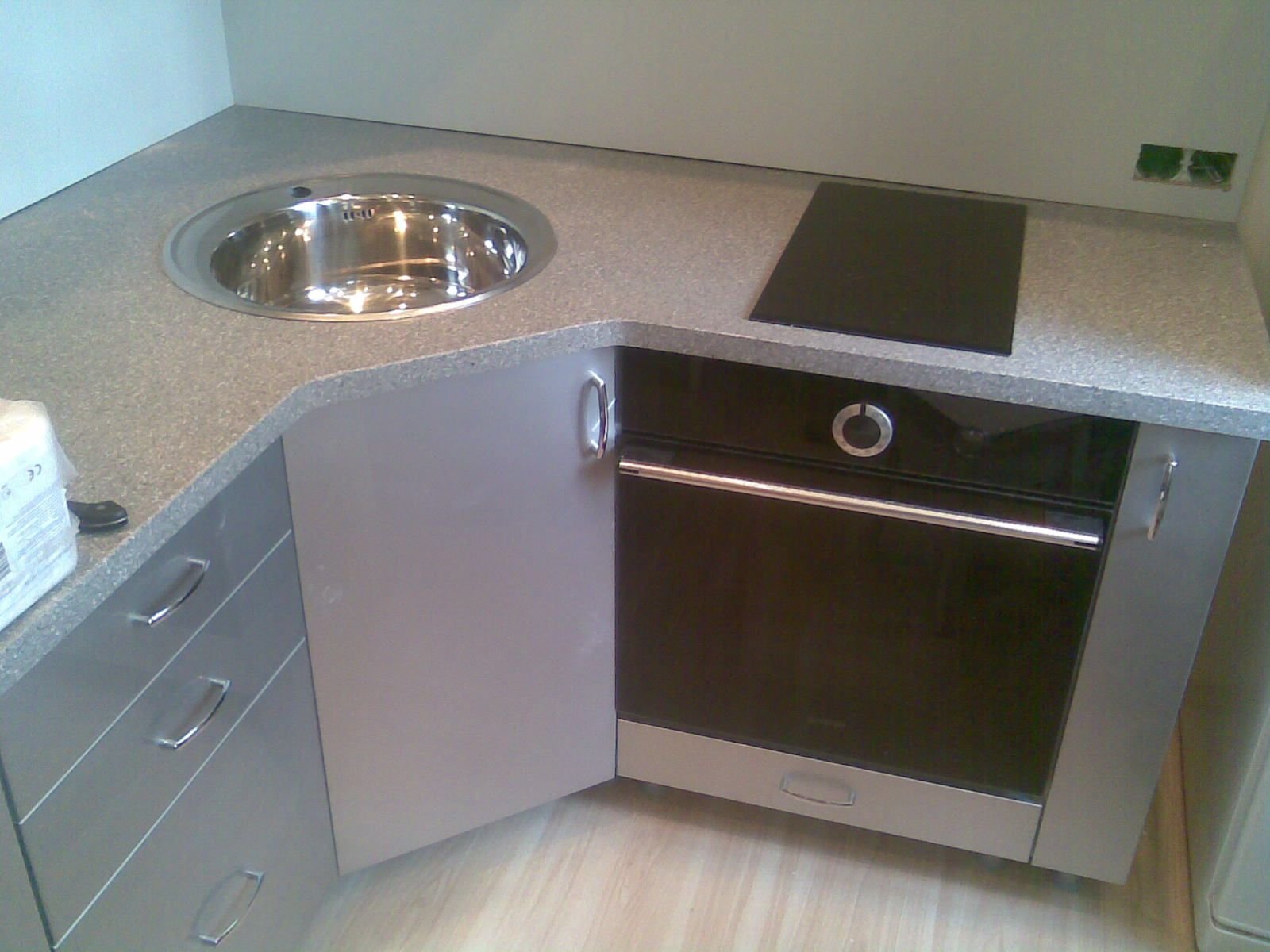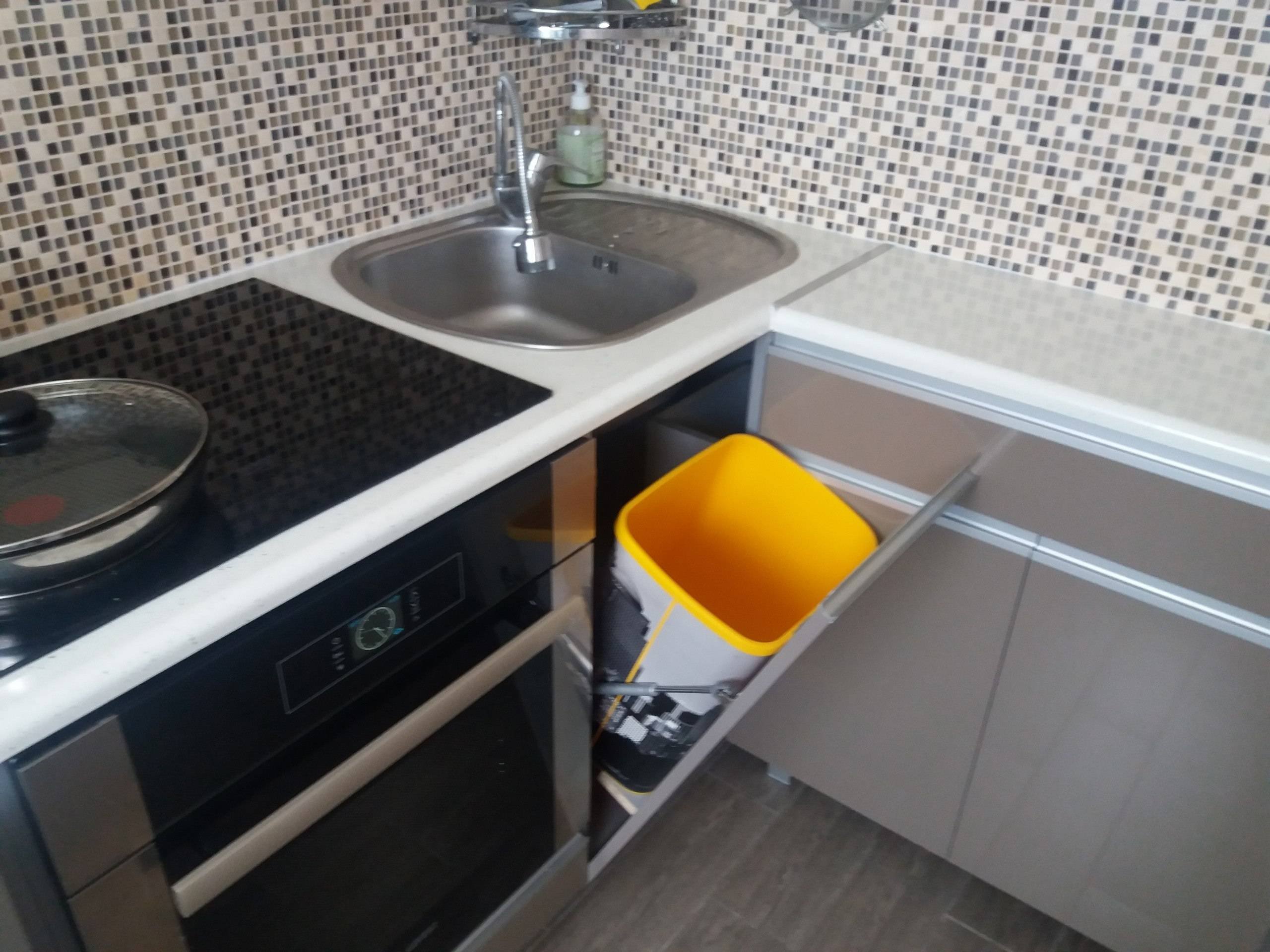 Встроенная кухня, раковина в углу кухни