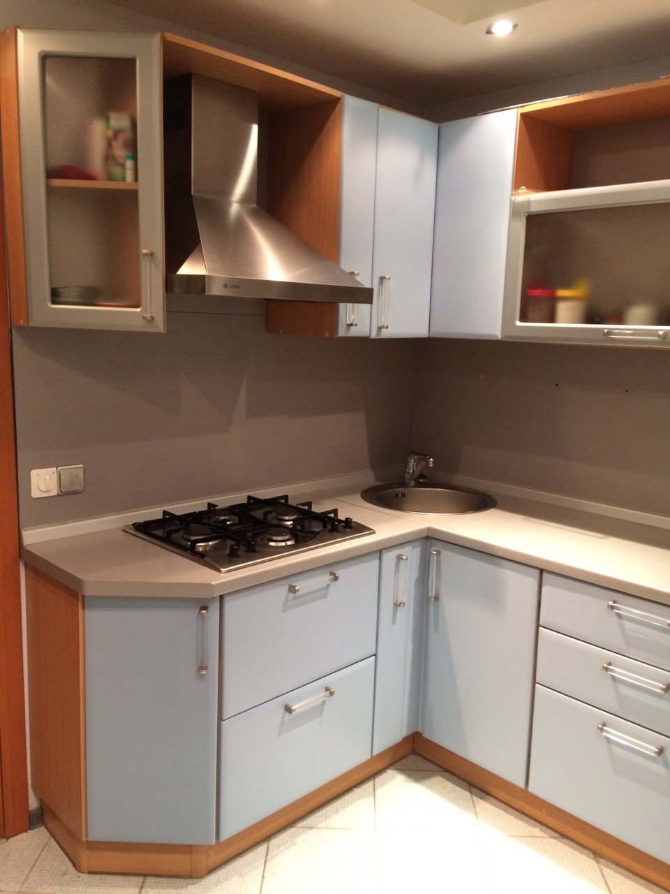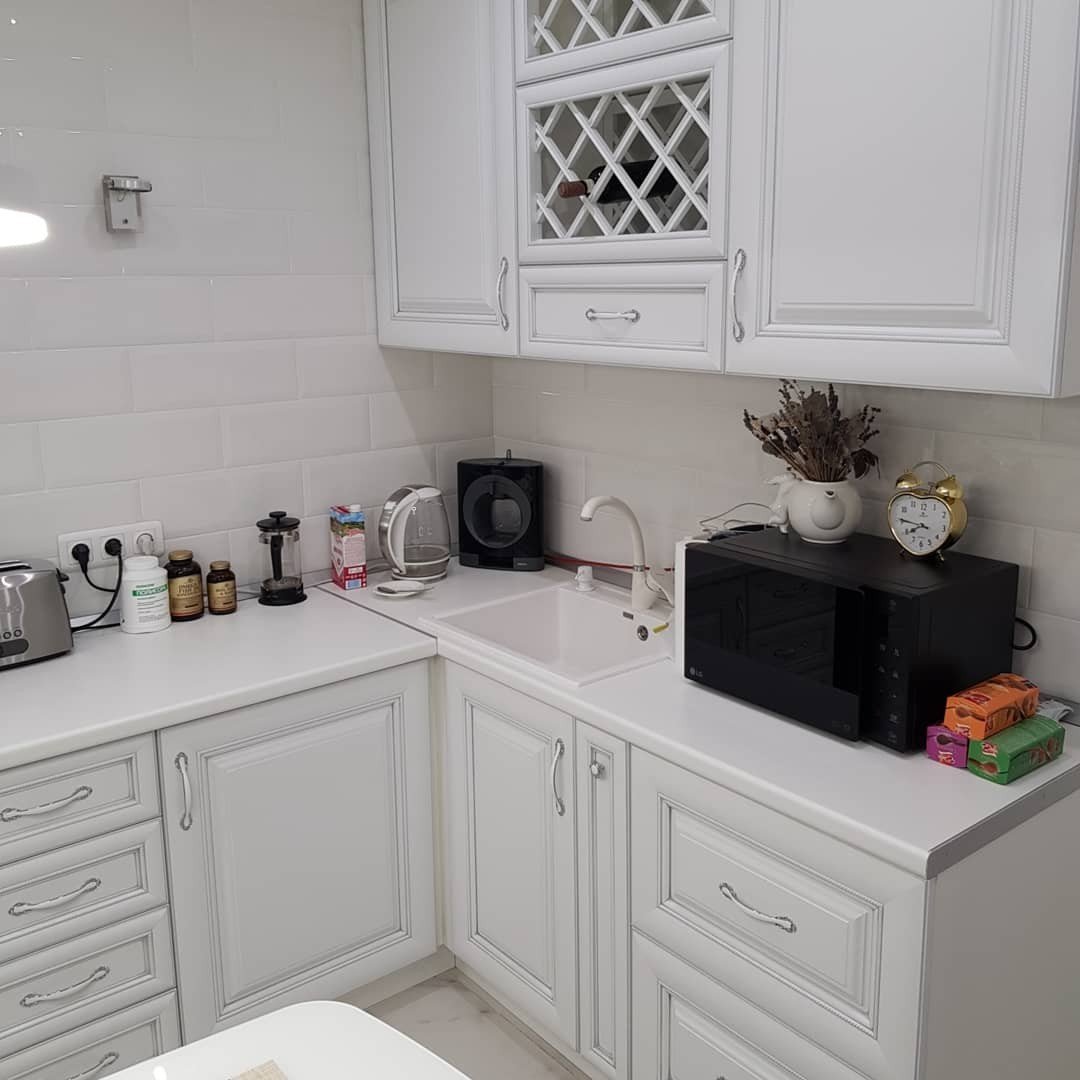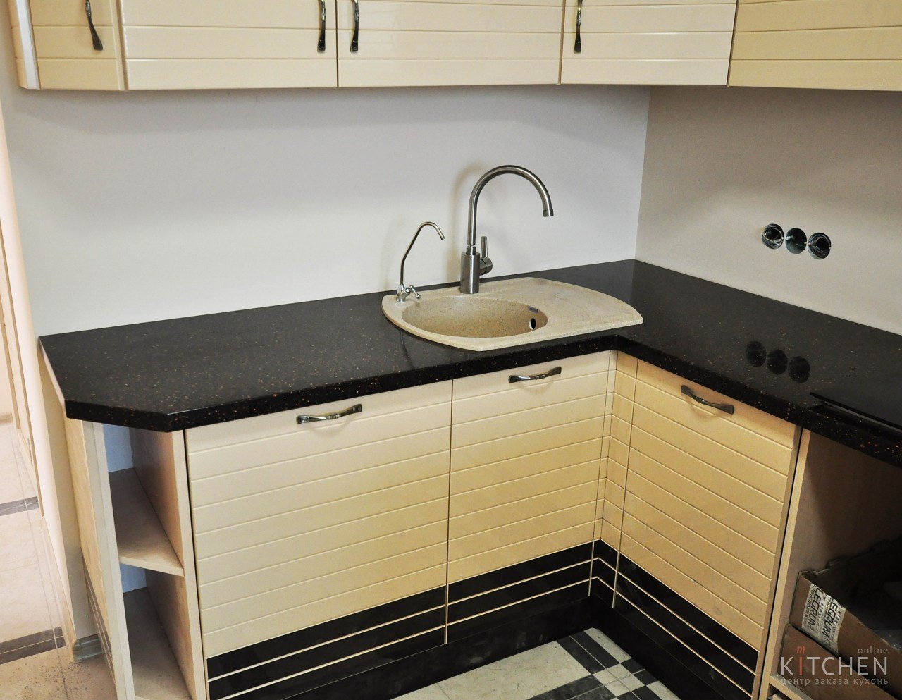 Встроенная кухня, раковина в углу кухни