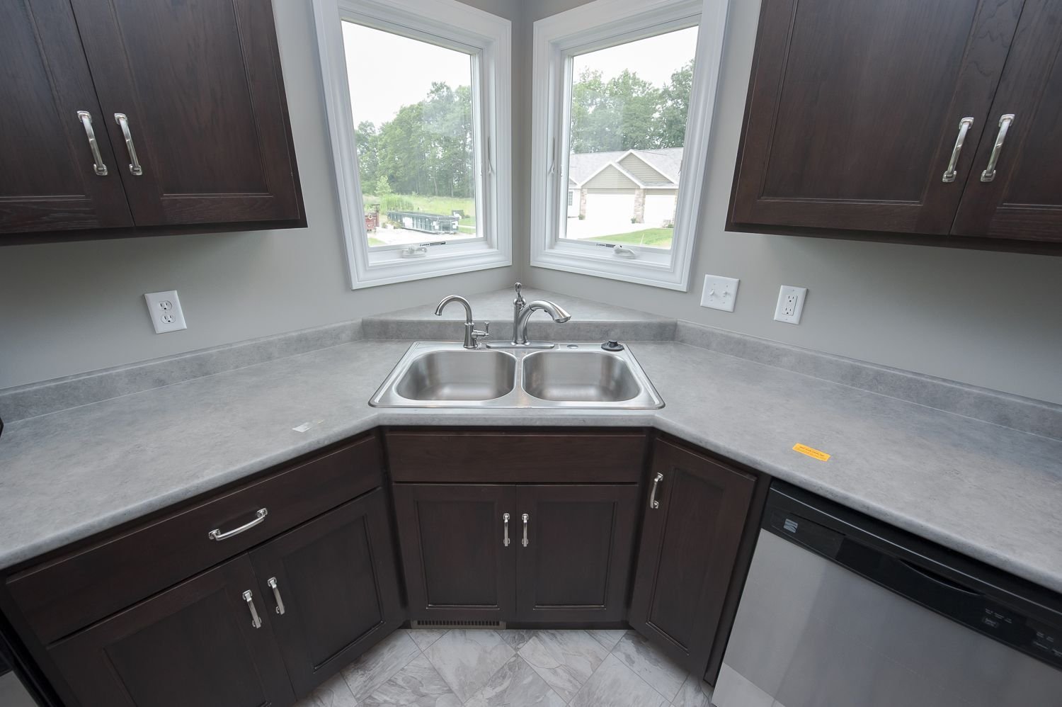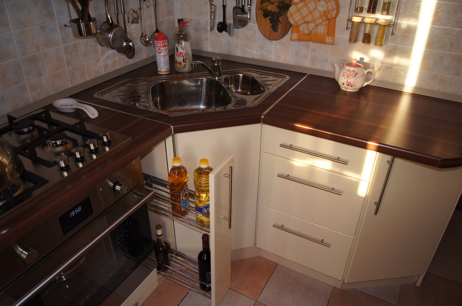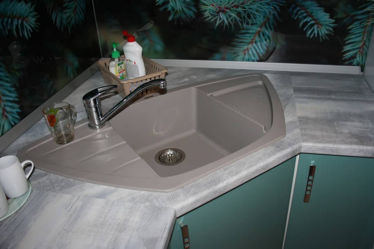 Мойка в углу кухни