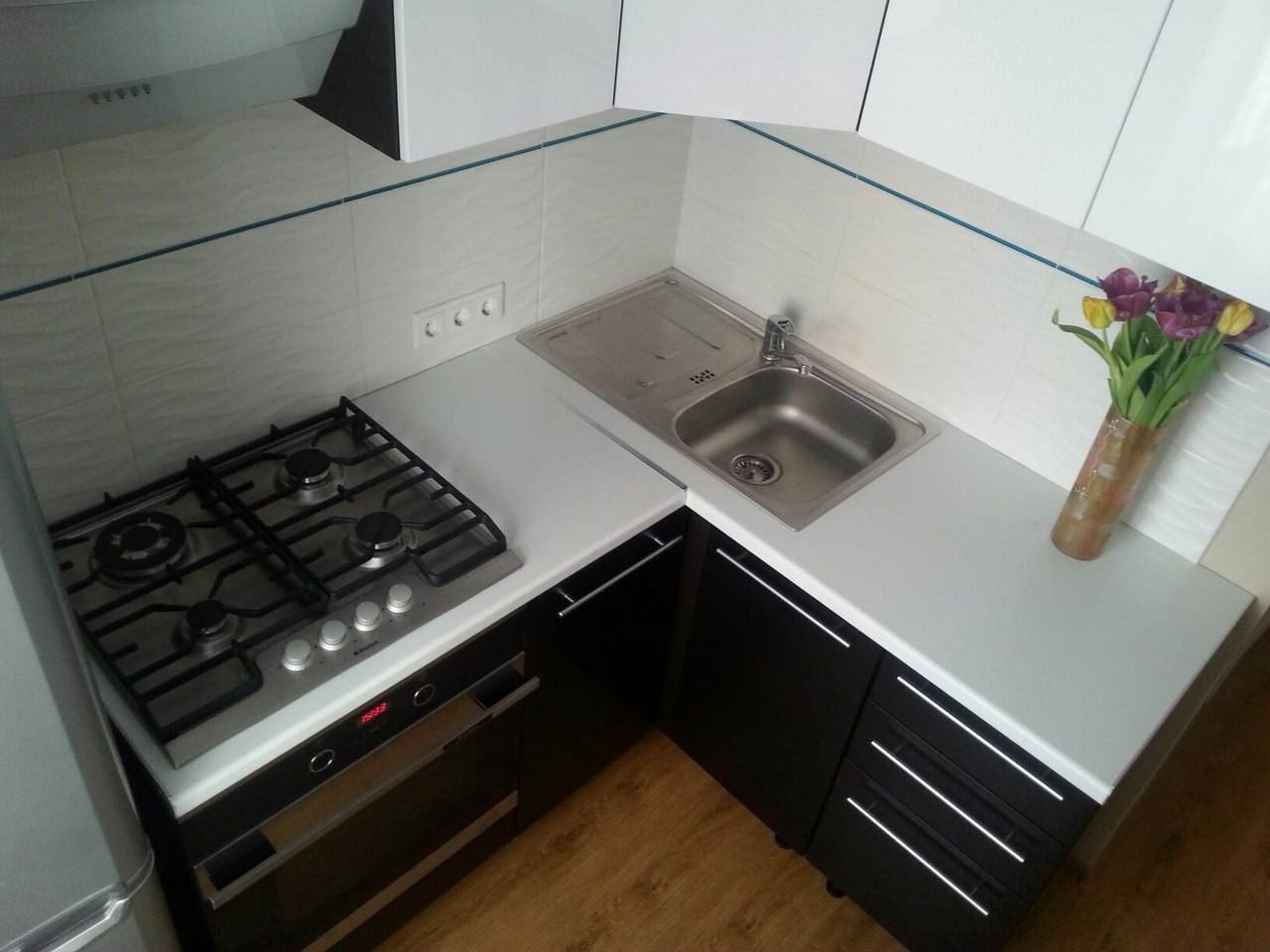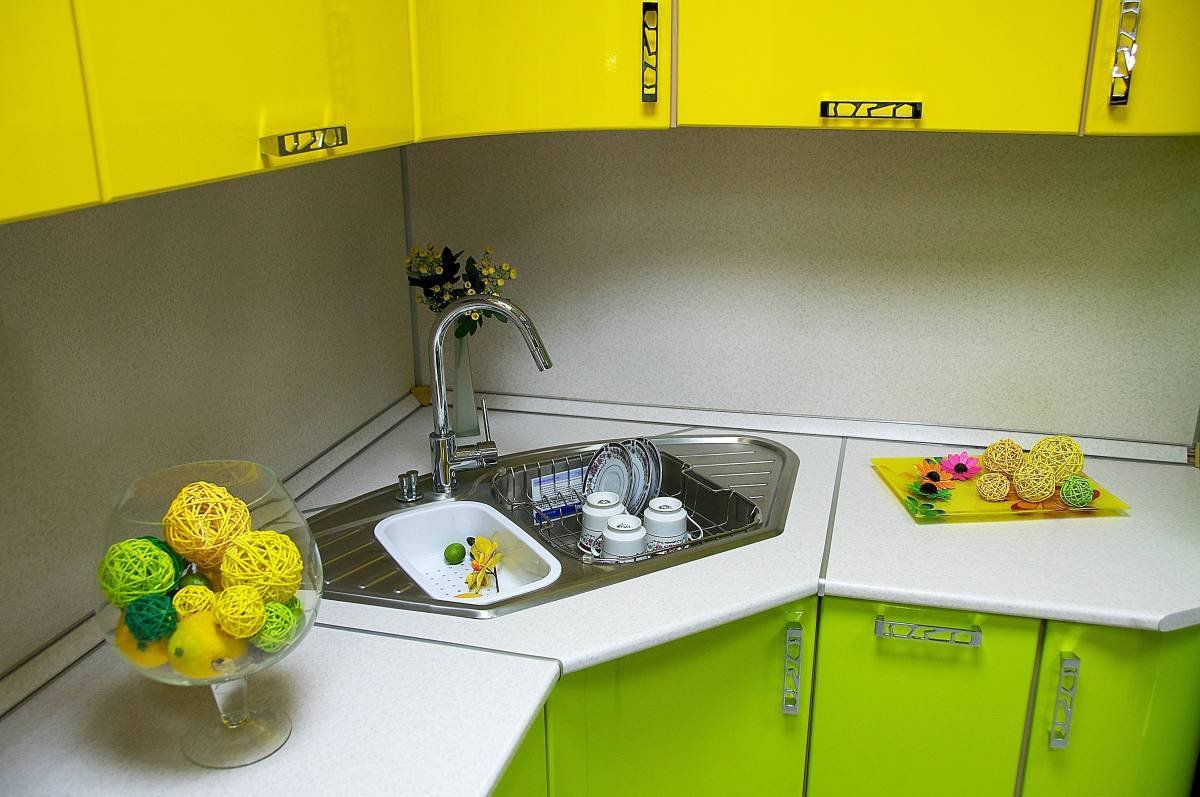 Угловые маленькие кухни с мойкой в углу
