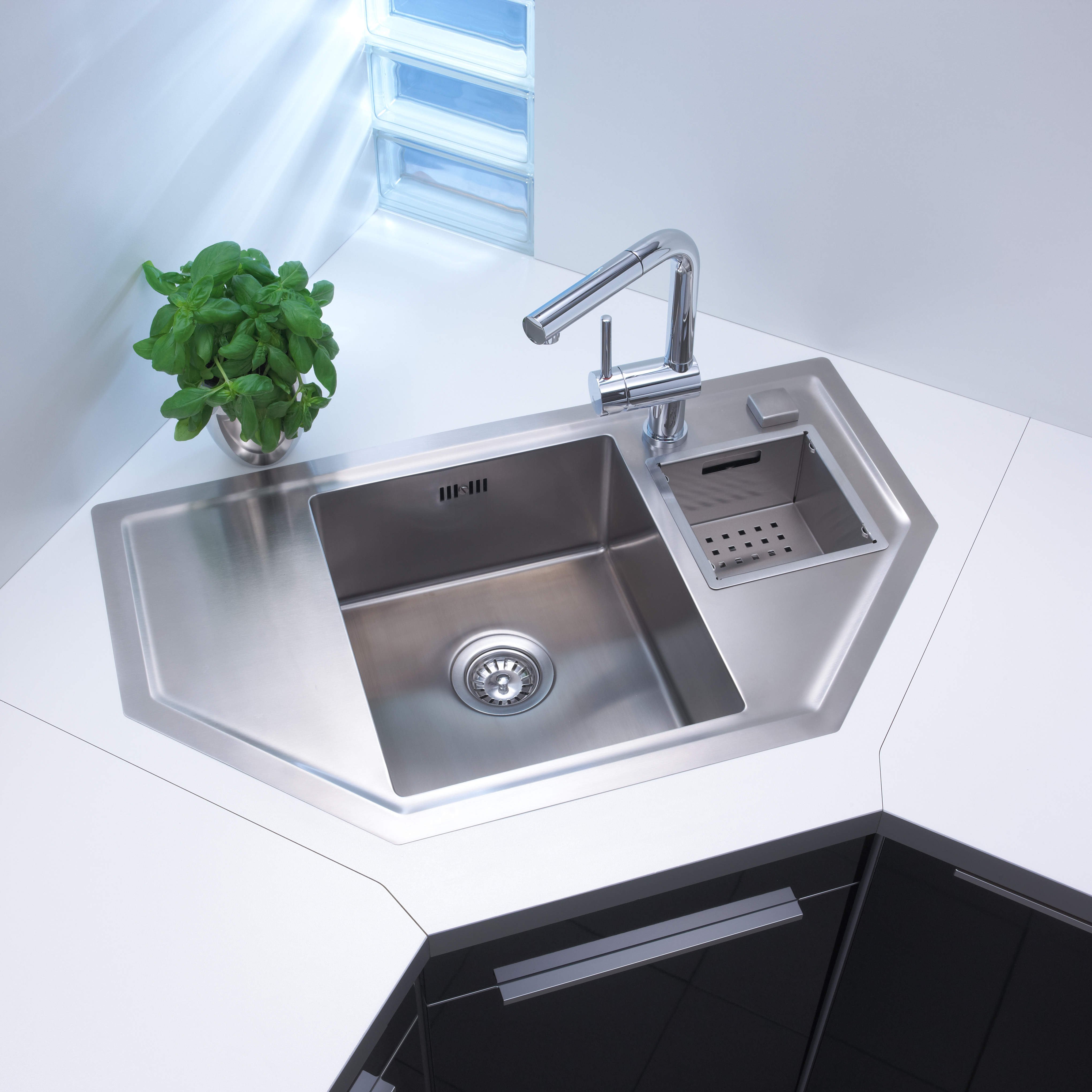 Раковина в углу кухни