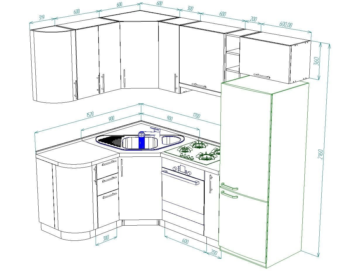 Маленькие угловые кухни с размерами