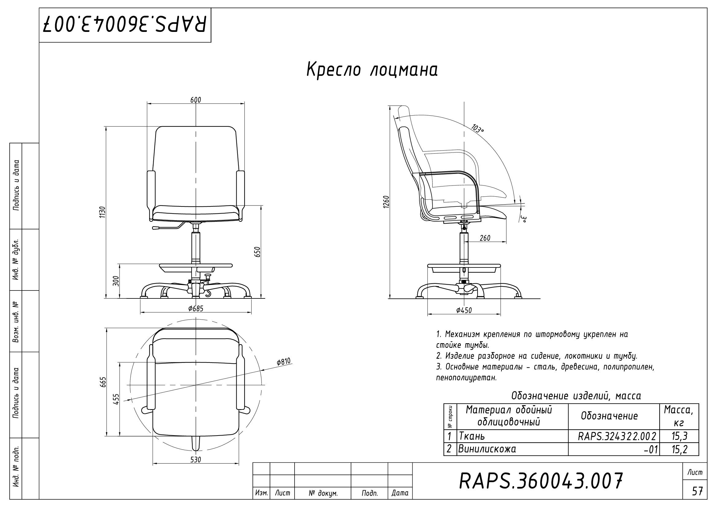 Кресло лоцмана Raps.360043.007