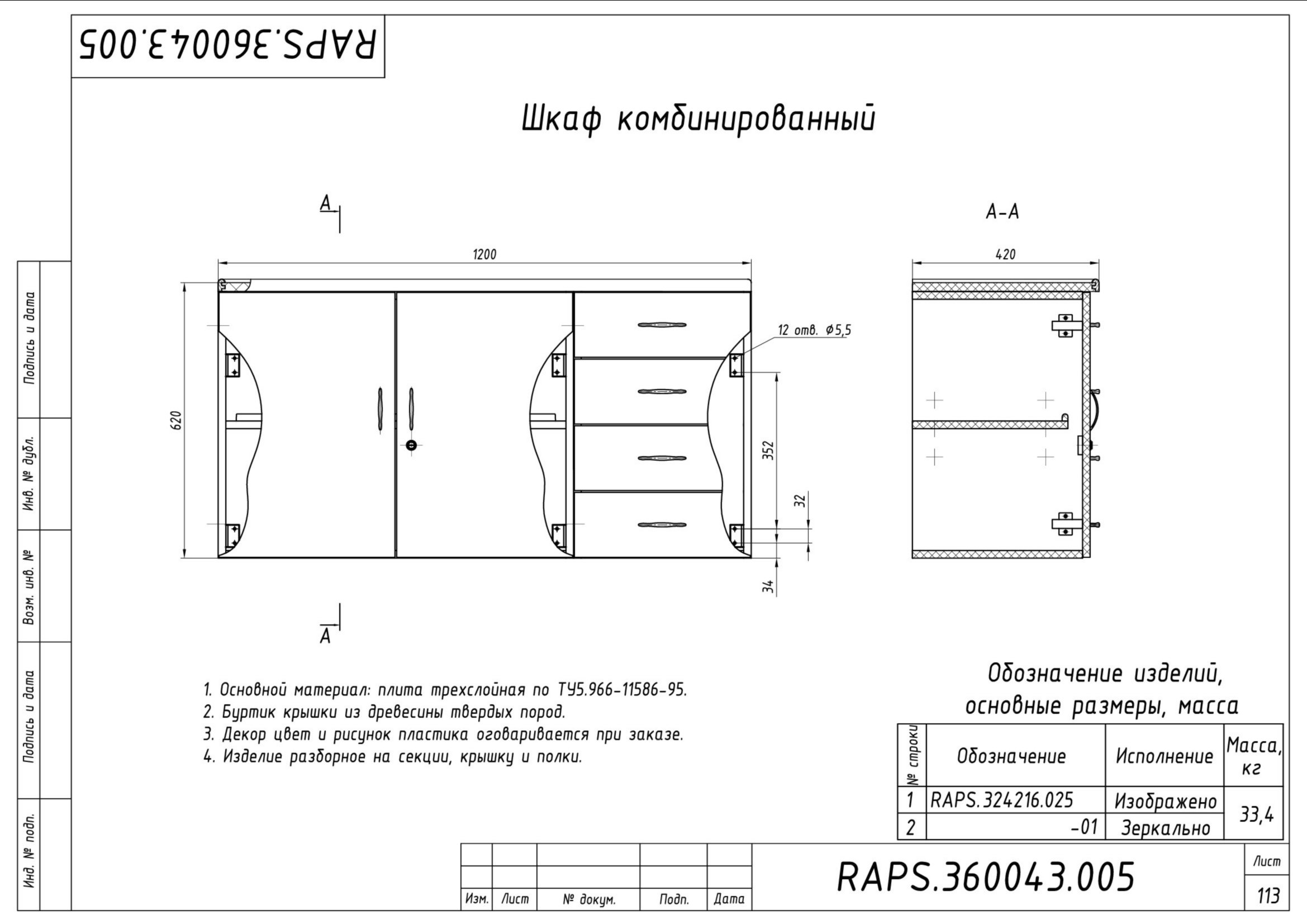 Чертеж буфет ножки
